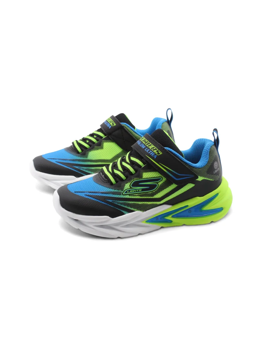 Alla ricerca di una sneaker che unisce comfort e stile? La Flex Glow Ultra di Skechers è la scelta perfetta per i tuoi piccoli. Con una chiusura pratica che combina velcro e lacci elastici, indossare queste scarpe sarà un gioco da ragazzi, garantendo una calzata sicura e veloce.