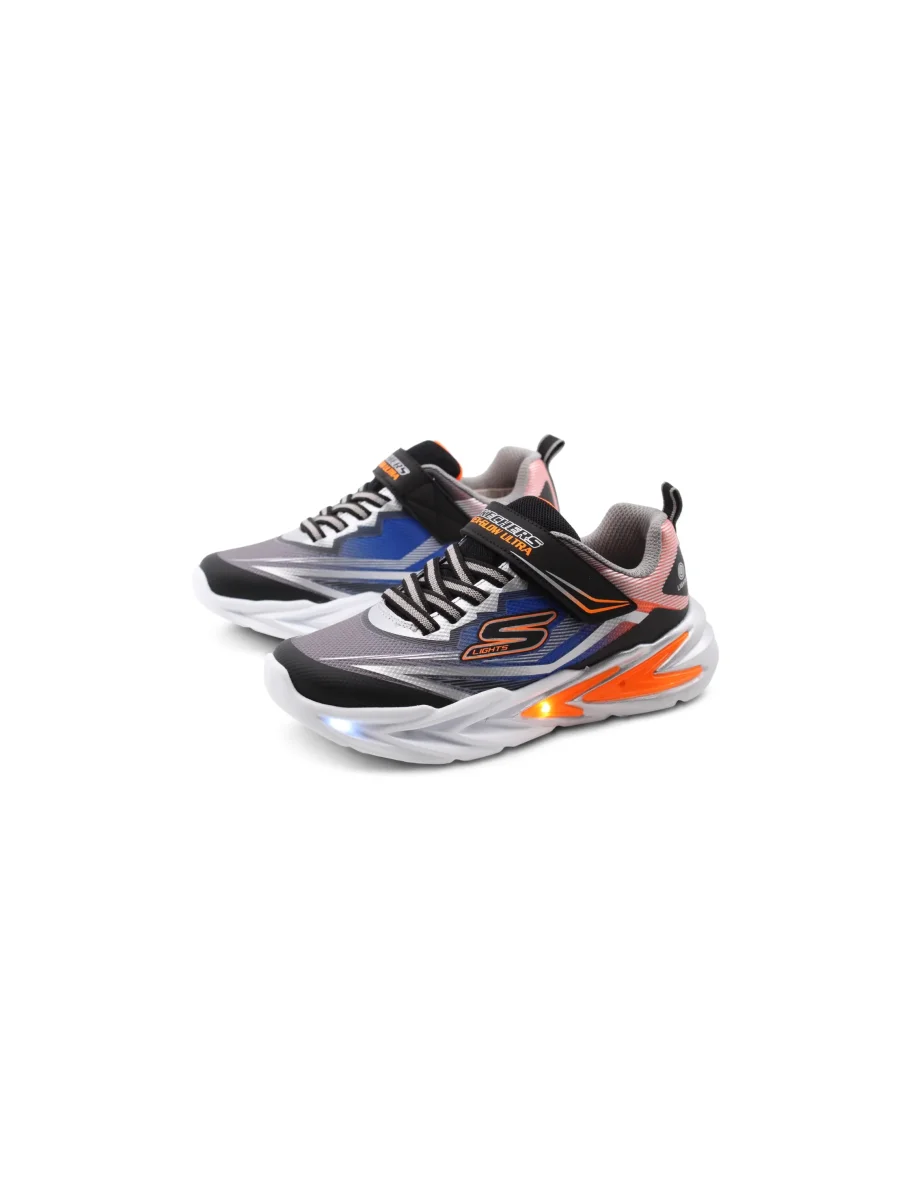 Le Flex Glow Ultra di Skechers sono pensate per i piccoli avventurieri che vogliono camminare con comodità e un tocco di originalità . La chiusura combina lacci elastici, facili da gestire, con un pratico velcro che garantisce una calzata sicura e veloce, perfetta per i bambini sempre in movimento.