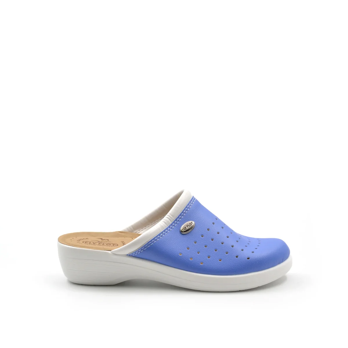 Ciabatta sanitaria da donna Fly Flot made in Italy in similpelle traforata con morbido sottopiede anatomico e automodellante in similpelle e fondo in gomma antiscivolo e Anti-Shock.