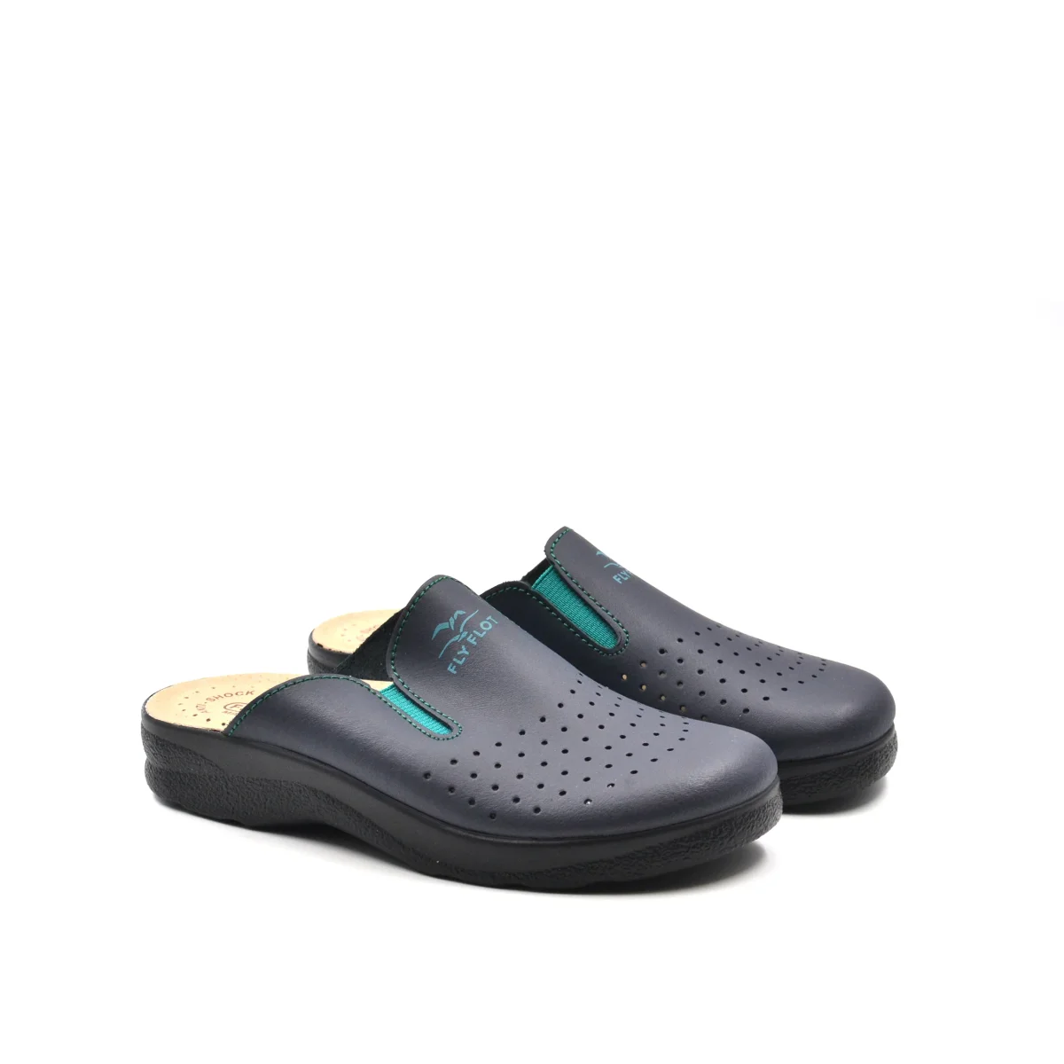 Ciabatta sanitaria da donna Fly Flot made in Italy in vera pelle traforata con morbido sottopiede anatomico e automodellante in vera pelle e fondo in gomma antiscivolo e Anti-Shock.