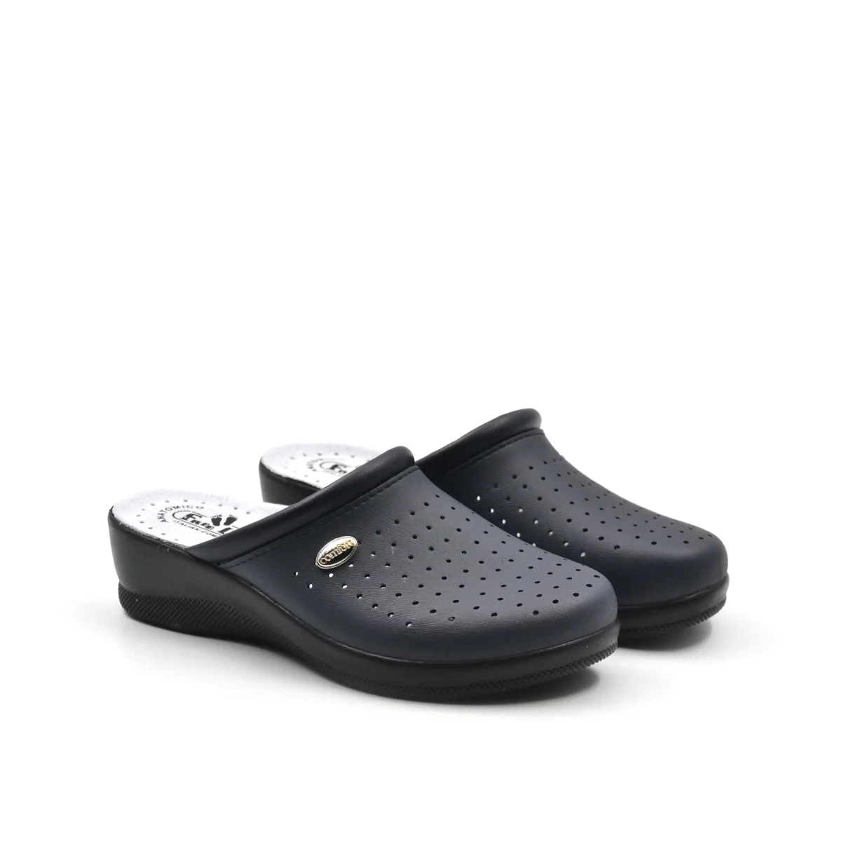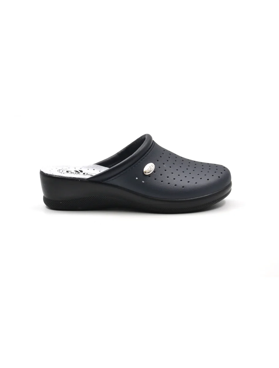 Ciabatta sanitaria da donna FreeLine made in Italy in vera pelle traforata con morbido sottopiede anatomico in vera pelle e fondo in gomma antiscivolo.