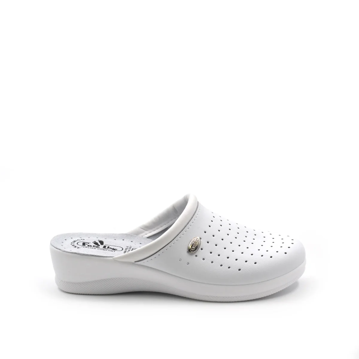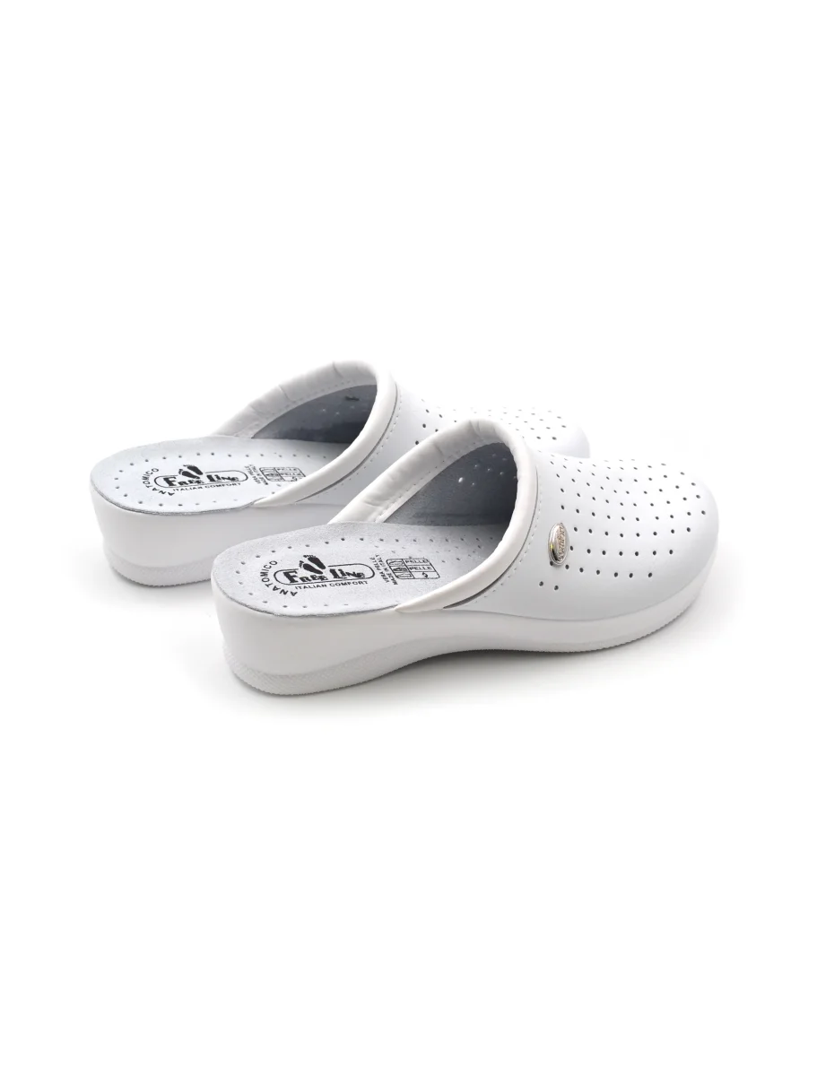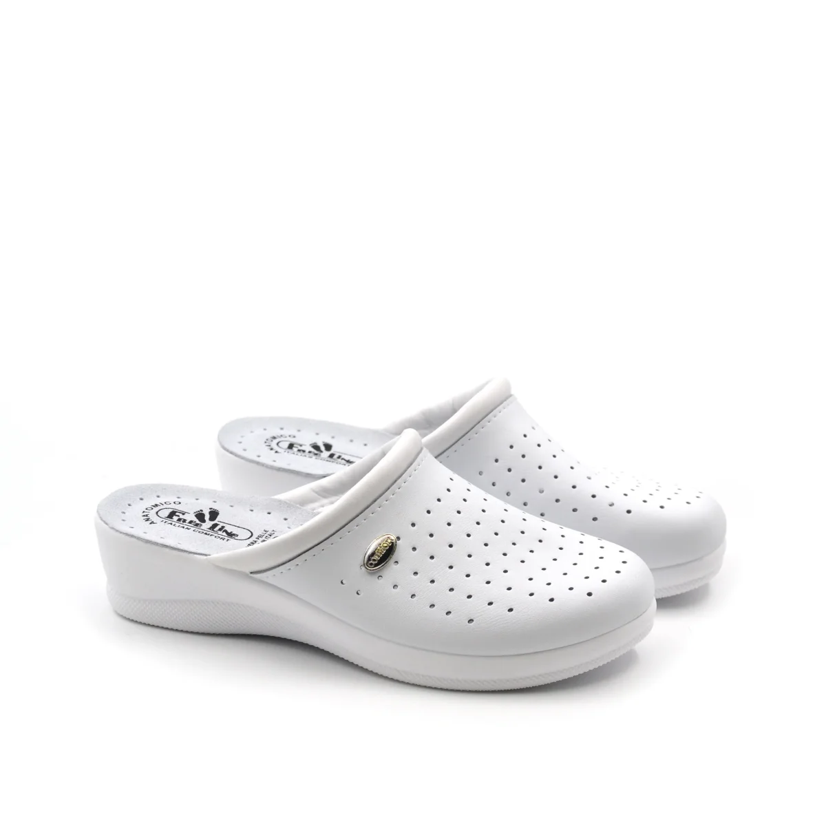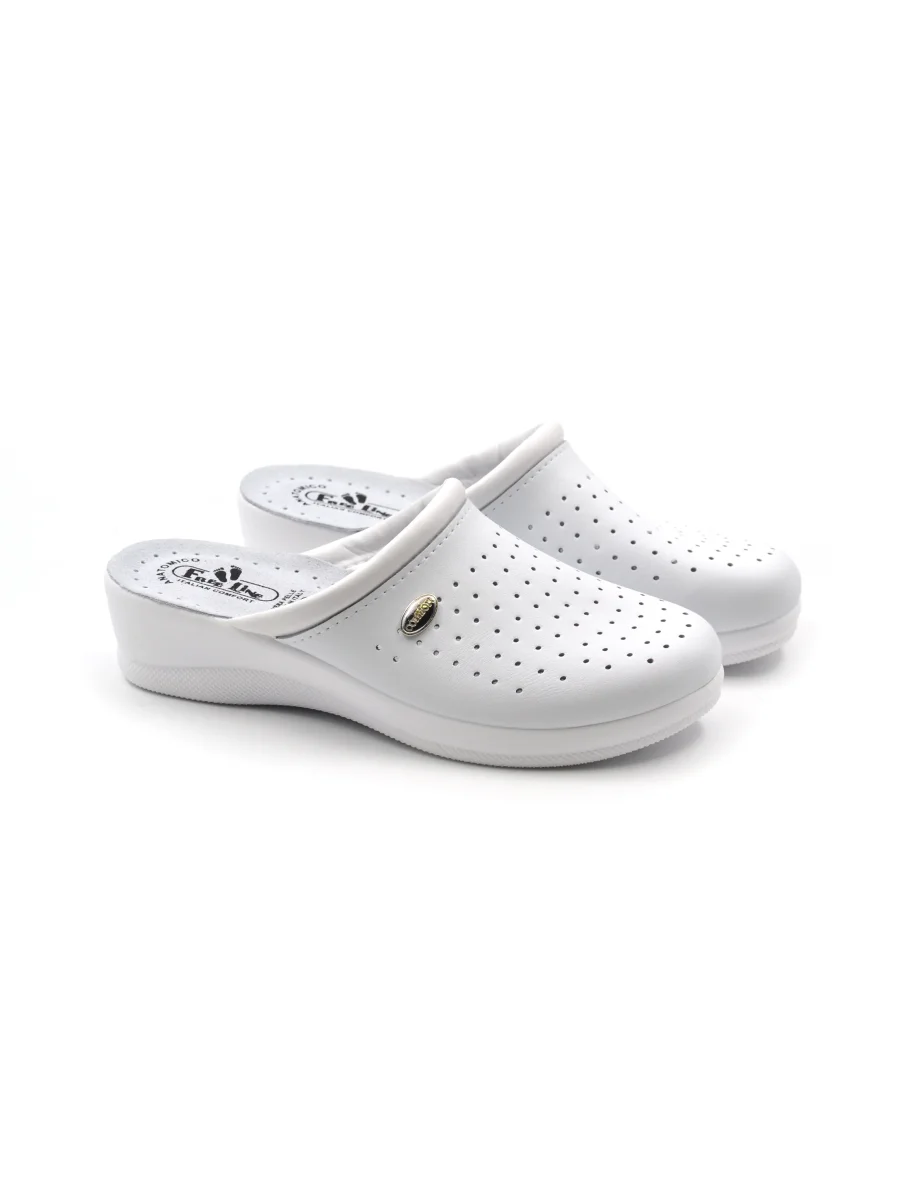Ciabatta sanitaria da donna FreeLine made in Italy in vera pelle traforata con morbido sottopiede anatomico in vera pelle e fondo in gomma antiscivolo.