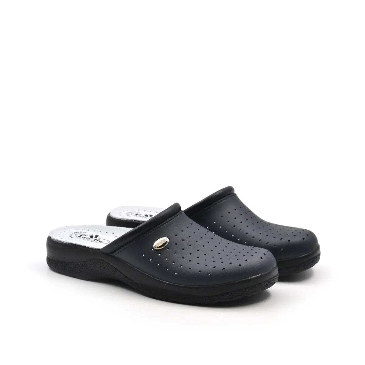 Ciabatta sanitaria da uomo FreeLine made in Italy in vera pelle traforata con morbido sottopiede anatomico in vera pelle e fondo in gomma antiscivolo.