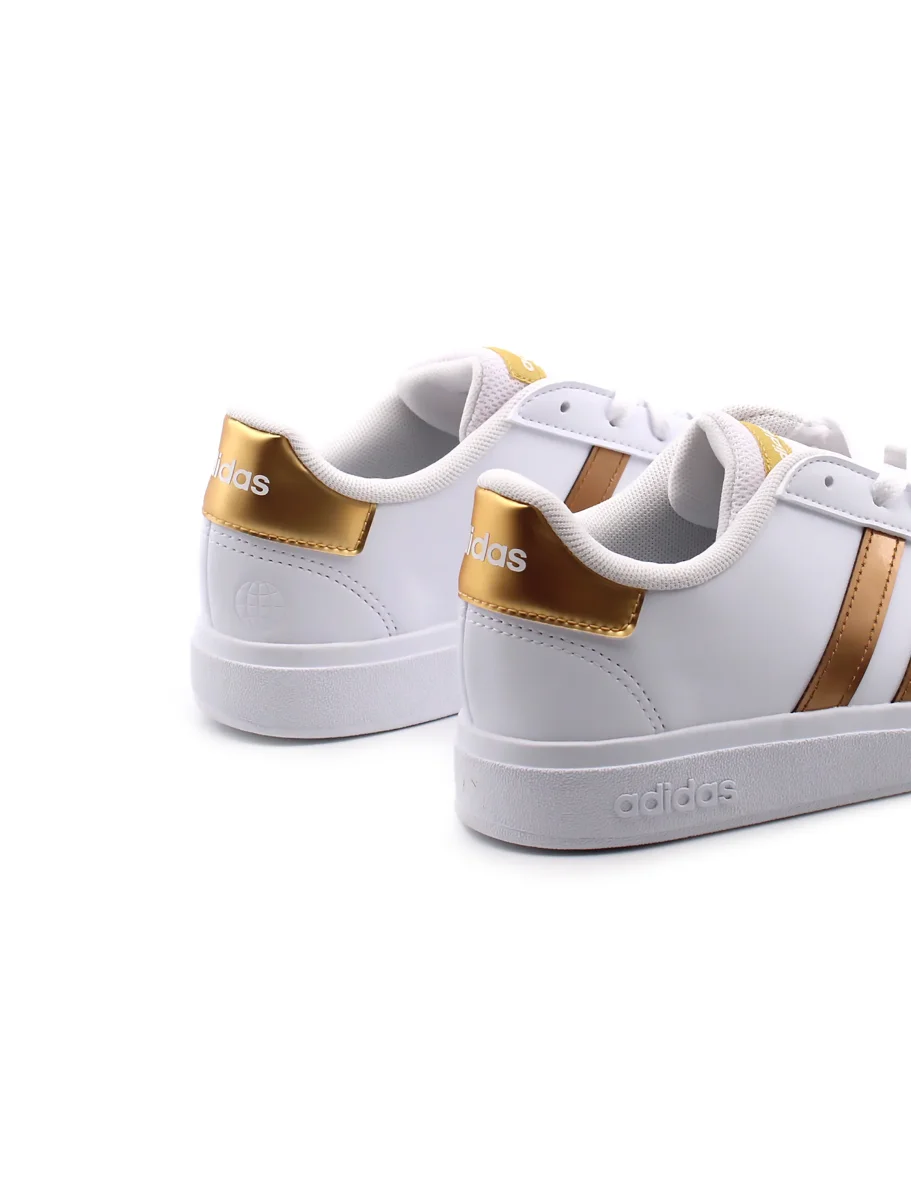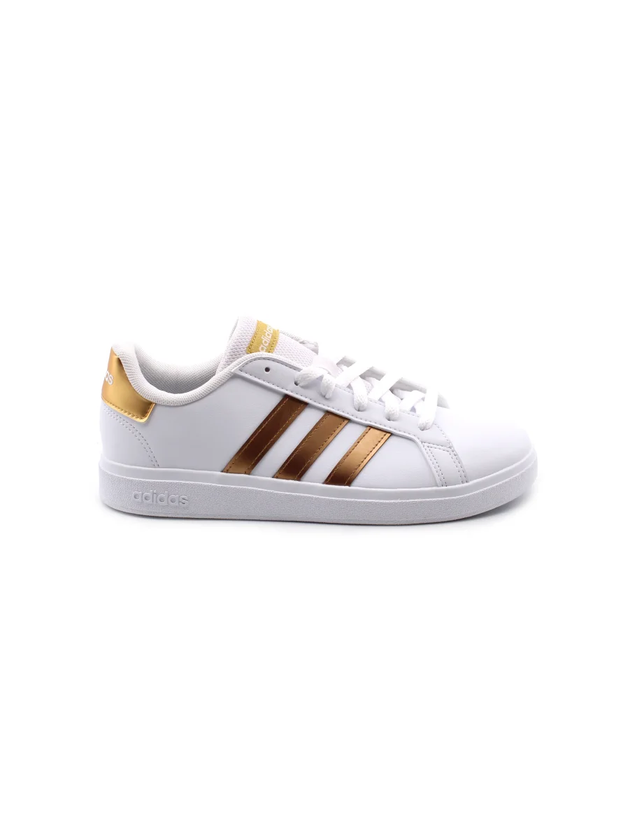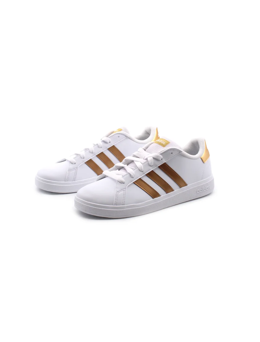 Adidas Grand Court 2.0 K sneaker da ragazza in pelle sintetica con sottopiede in tessuto e suola in gomma. Questo prodotto è realizzato con materiali riciclati.