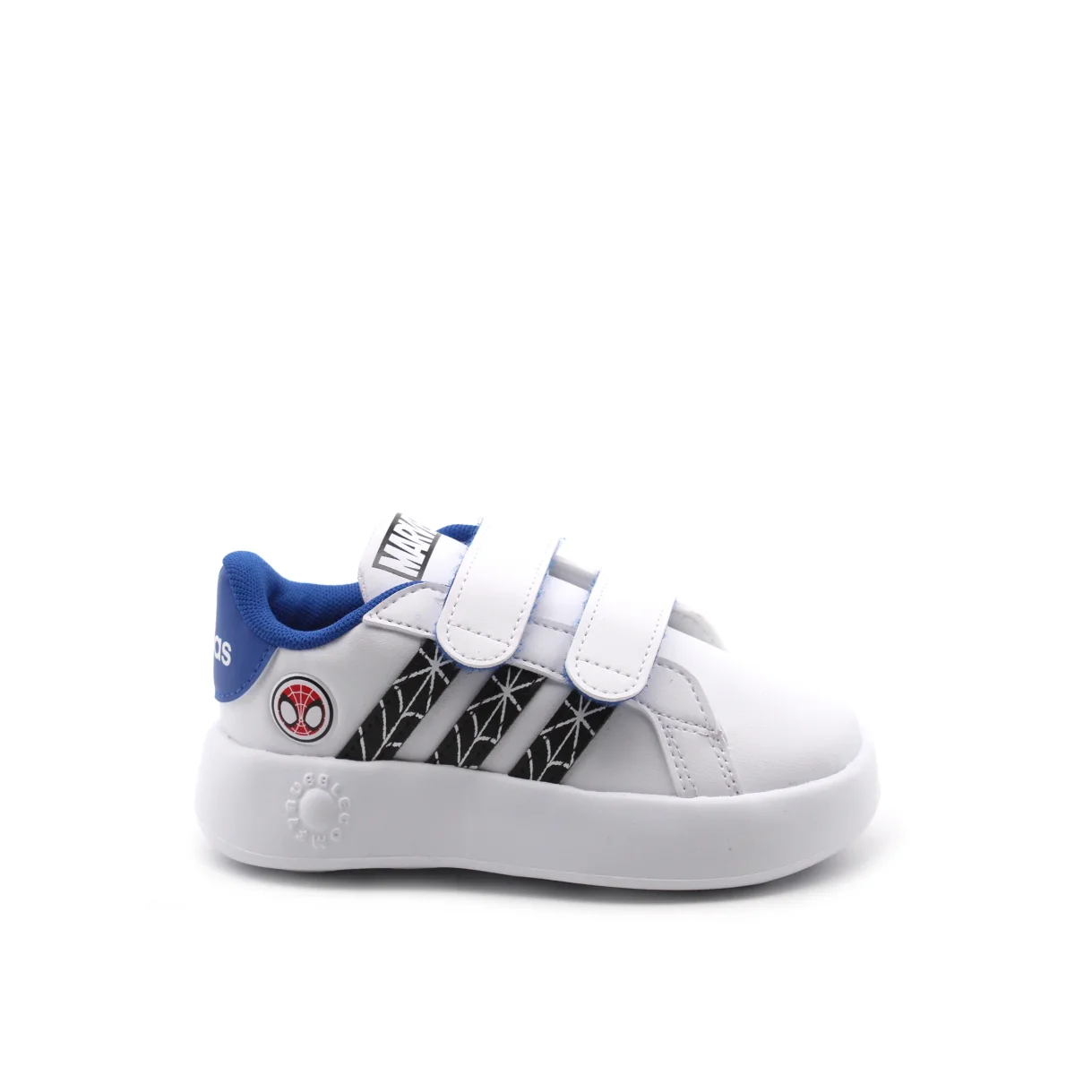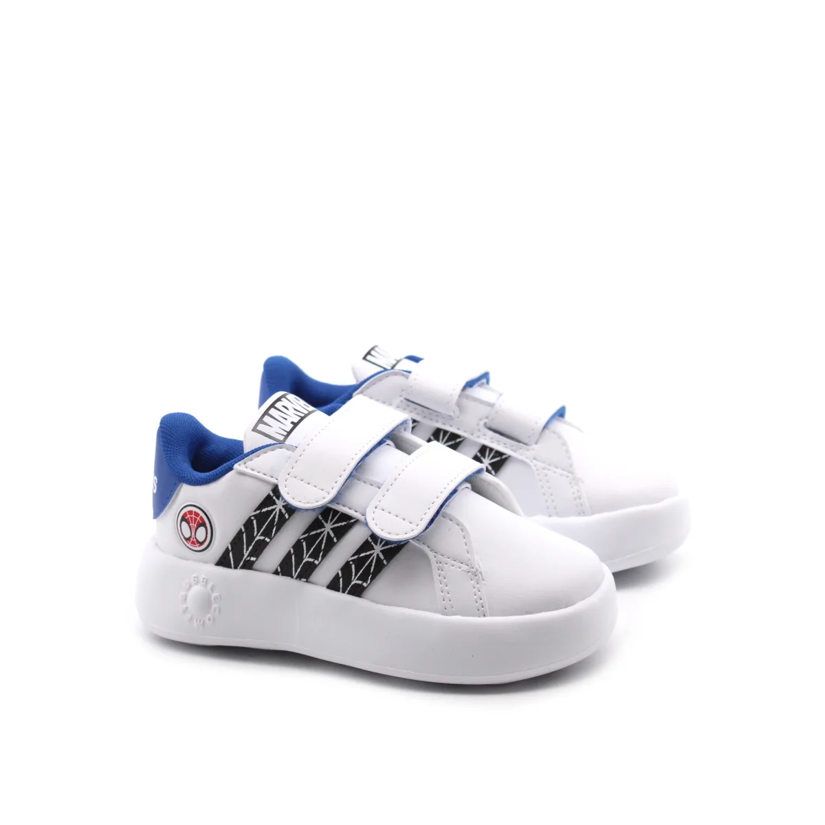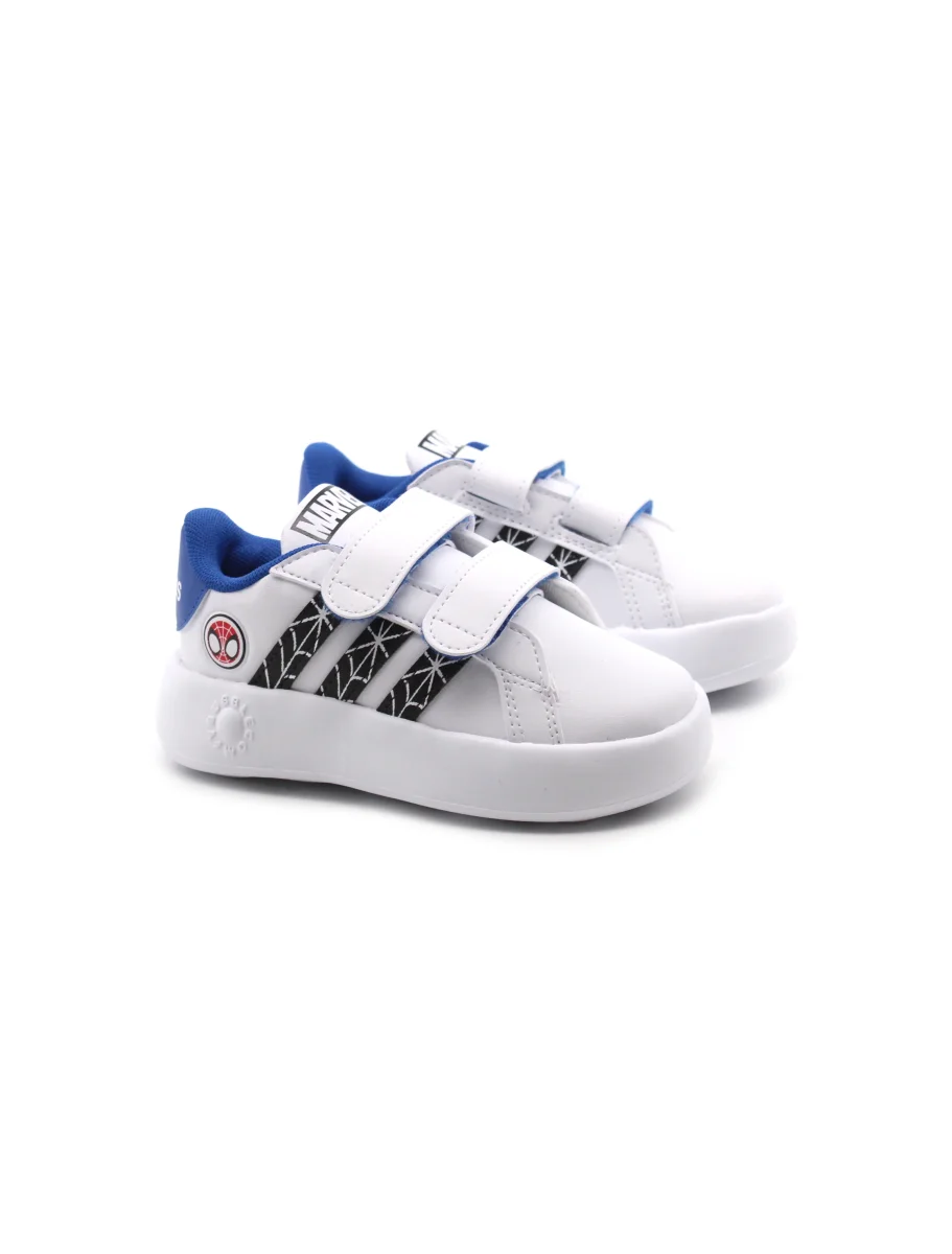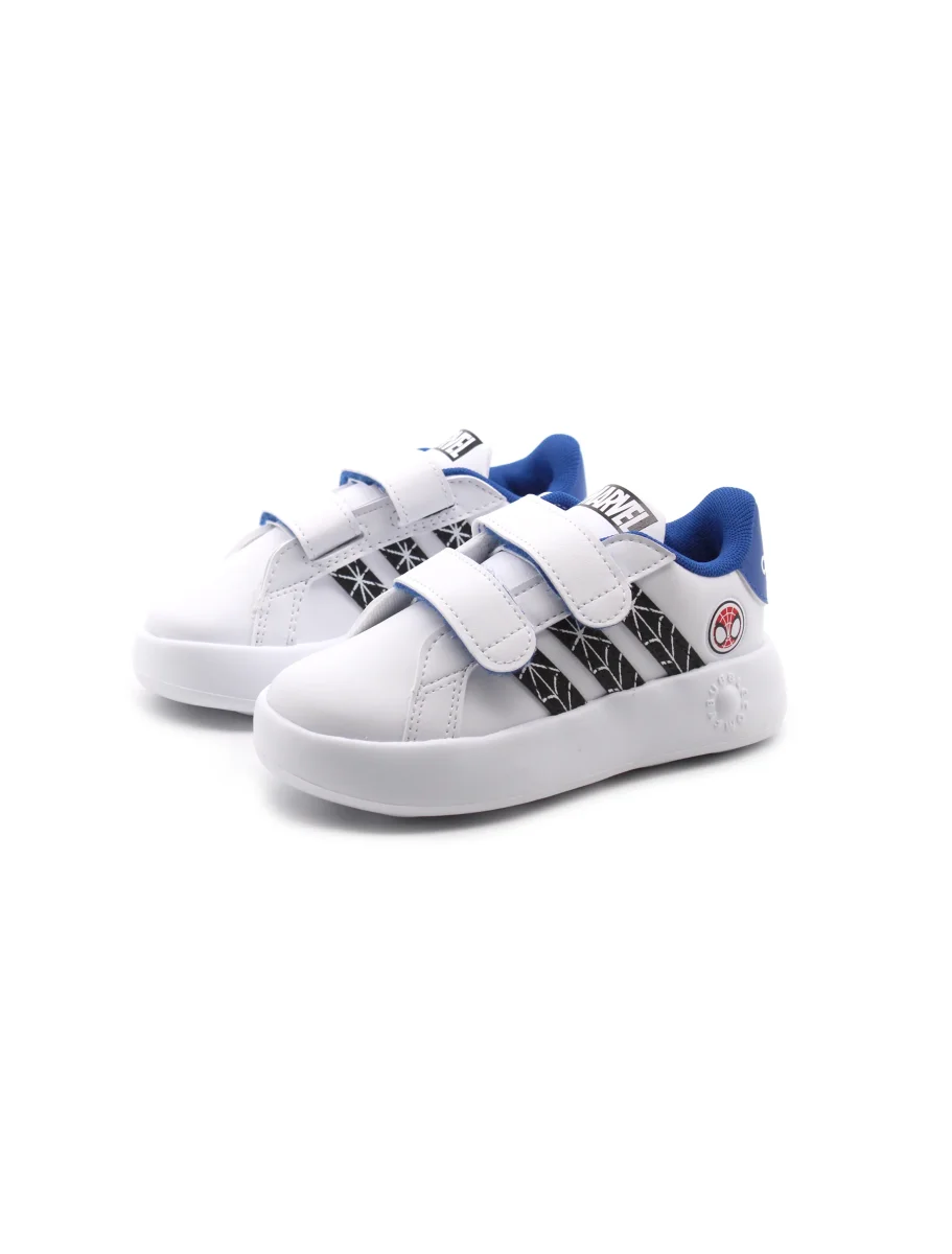 La tomaia in materiale sintetico è rifinita dalle leggendarie 3 strisce e dalle grafiche Marvel’s Spider-Man. Le chiusure a strappo completamente regolabili rendono il modello facilissimo da indossare e sfilare e assicurano una calzata stabile e avvolgente. L’intersuola monopezzo in EVA e la suola offrono ammortizzazione, grip e leggerezza.