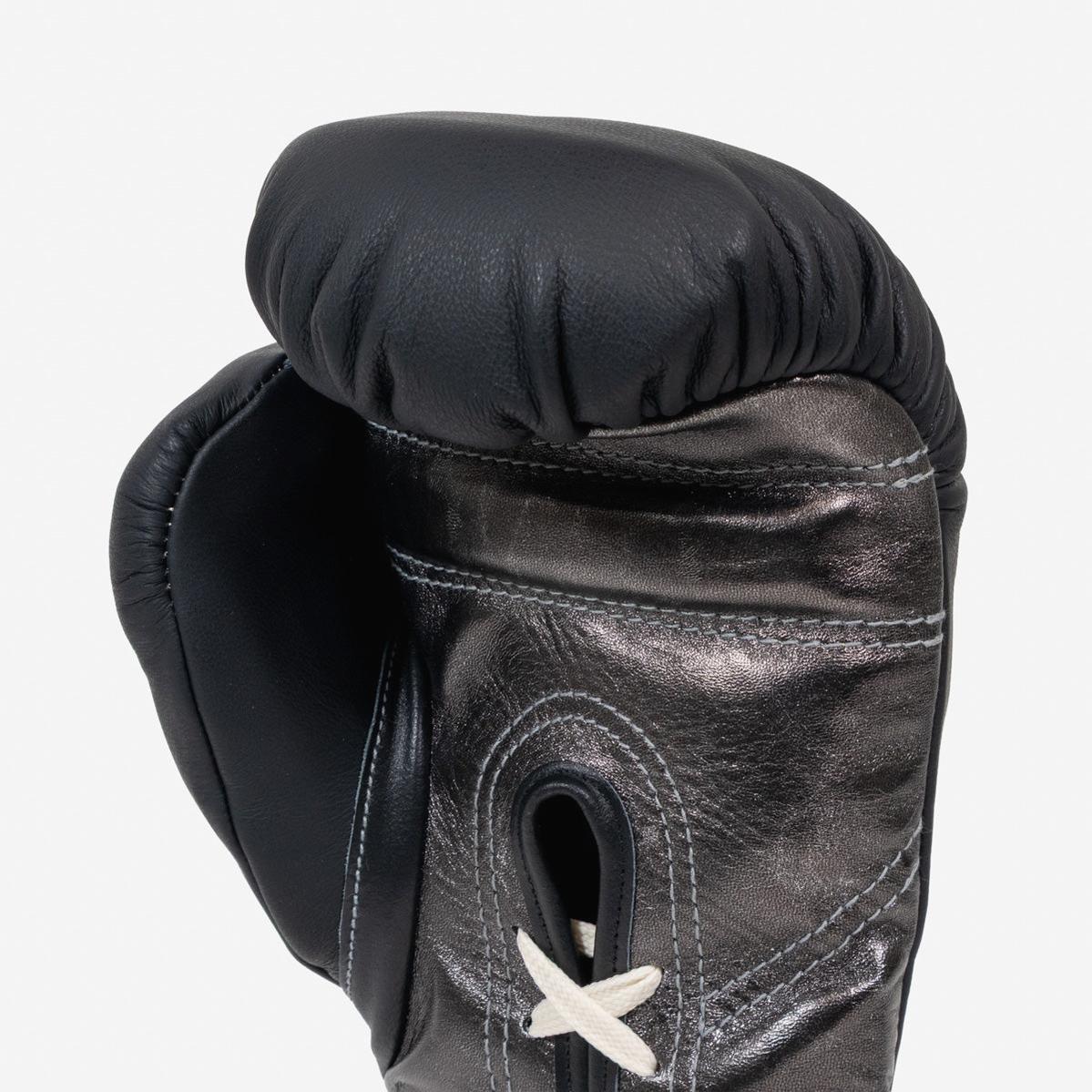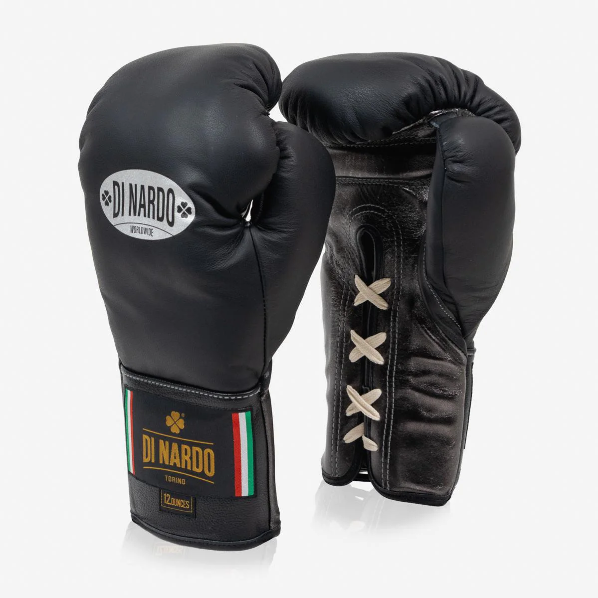 I Guantoni Di Nardo con lacci 12 Oz Nero-argento scuro esprimono l’eccellenza dell’artigianato italiano applicato alla nobile arte. Realizzati interamente a mano dal Maestro Artigiano Filippo Leccese “Di Nardo”, offrono una calzata avvolgente e una chiusura tradizionale con lacci, ideale per chi cerca precisione, controllo e sensibilità sul colpo.