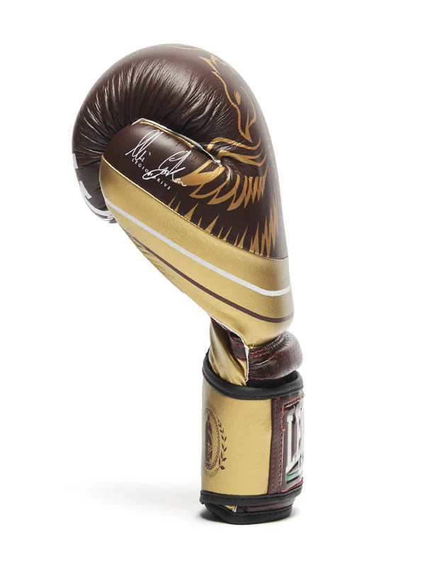 I Guantoni Leone Legionarivs GN202 sono un omaggio al grande campione italiano di MMA Alessio Sakara. Questo modello racchiude tutta la forza e la potenza del grande legionario, assieme alla sua determinazione e al suo coraggio. Questi guantoni sono realizzati in ottima pelle di bufalo, hanno una chiusura in velcro sul polsino che assicura fermezza al guanto e un rinforzo sul manicotto che fornisce maggiore sostegno. Ogni dettaglio del design è perfetto e curato nei particolari, l’abbinamento di nero e oro dona un look davvero aggressivo e unico, impreziosito anche dalla firma del grande campione mondiale.