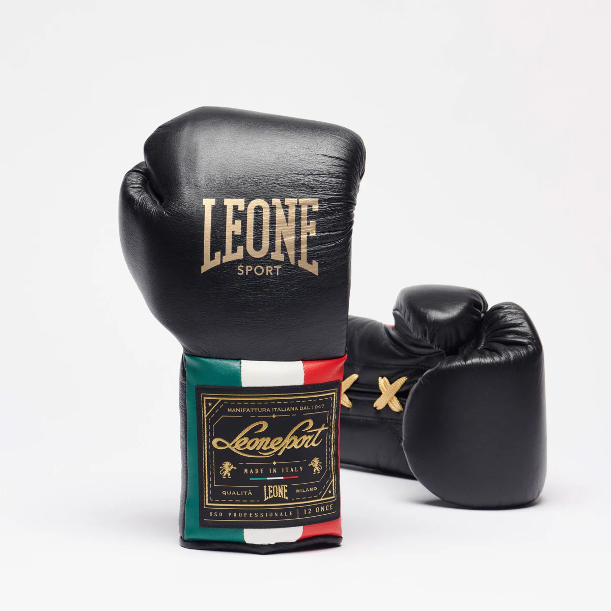 I guantoni Leone Orlando Tricolore con lacci in Nero uniscono design italiano e manifattura artigianale Made in Italy per chi pretende il massimo in palestra e sul ring. La pelle di bovino garantisce resistenza e una calzata morbida, mentre l’imbottitura assorbe gli impatti senza perdere sensibilità su sacco, colpitori e nello sparring. Il polsino alto con tricolore Italia offre sostegno stabile al polso e uno stile inconfondibile; la chiusura con lacci assicura un fit su misura, fermo e preciso. Il look nero, pulito e deciso, è completato dai dettagli firmati Leone Sport. Una scelta professionale per chi cerca qualità , comfort e carattere in ogni colpo.