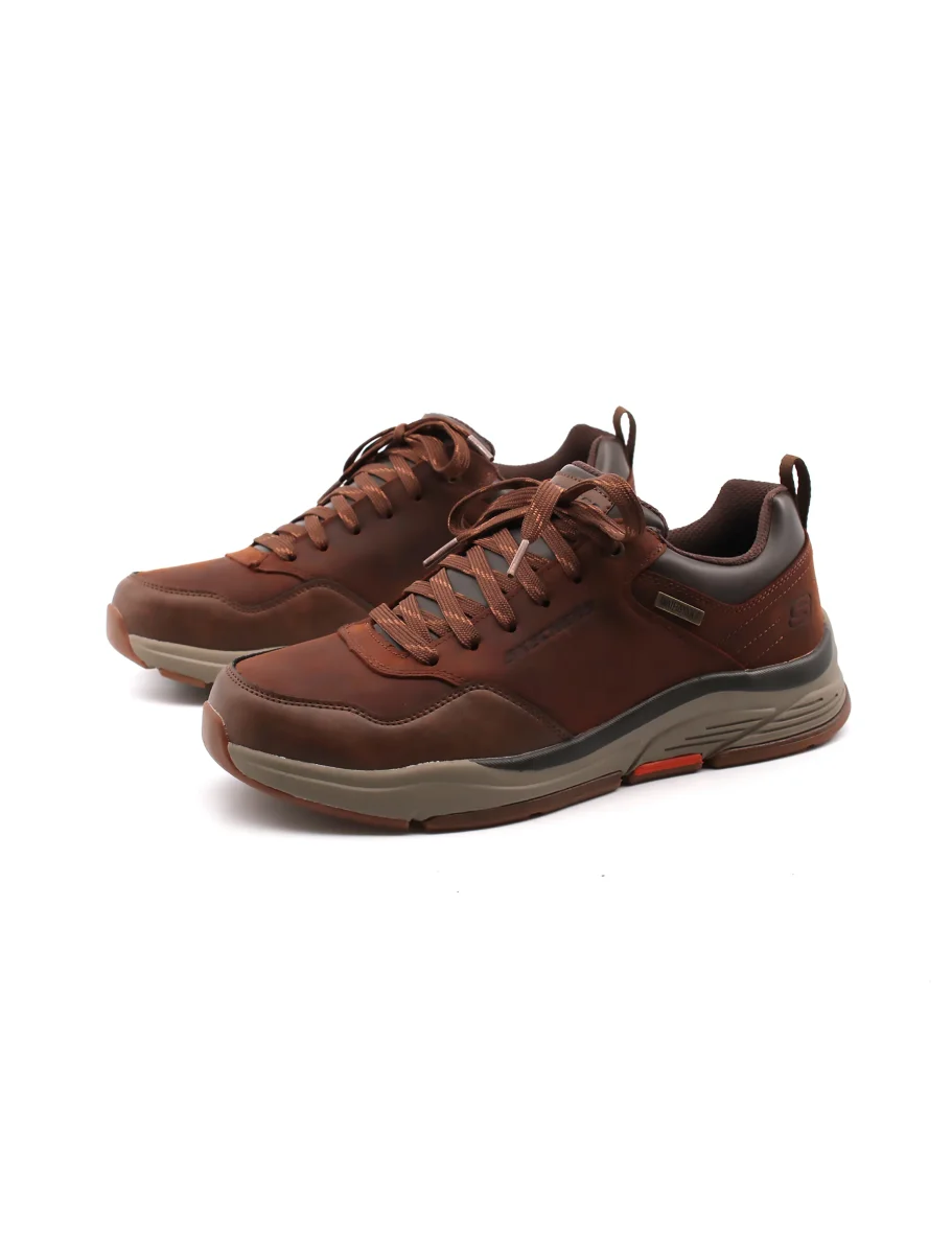 Le Hombr sneaker waterproof da uomo di Skechers sono l’alleato ideale per le tue avventure quotidiane. La chiusura a lacci assicura una calzata sicura e personalizzabile, così puoi sentirti sempre a tuo agio, sia che tu stia passeggiando in città sia che ti goda una giornata all’aperto.