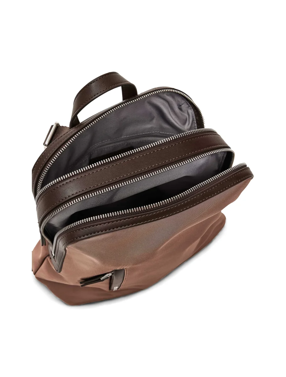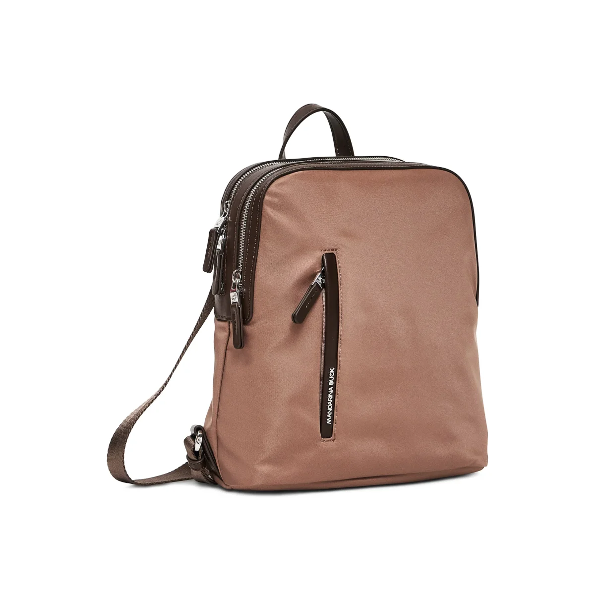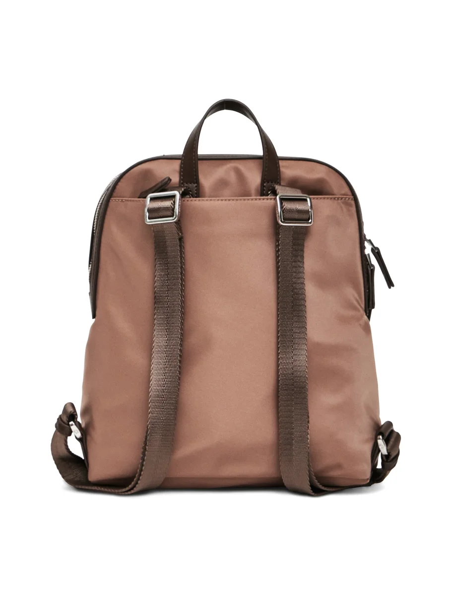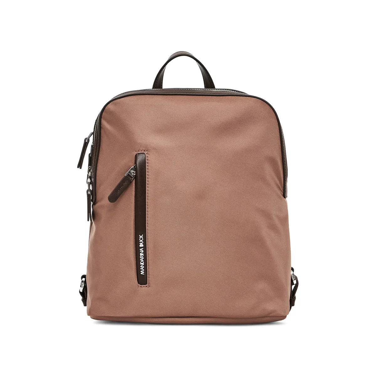 Zaino da donna Mandarina Duck in nylon brillante con dettagli in ecopelle. Tasche esterne integrate nel design degli articoli. Interni personalizzati con molteplici tasche. Spallacci regolabili