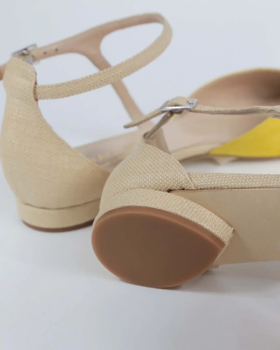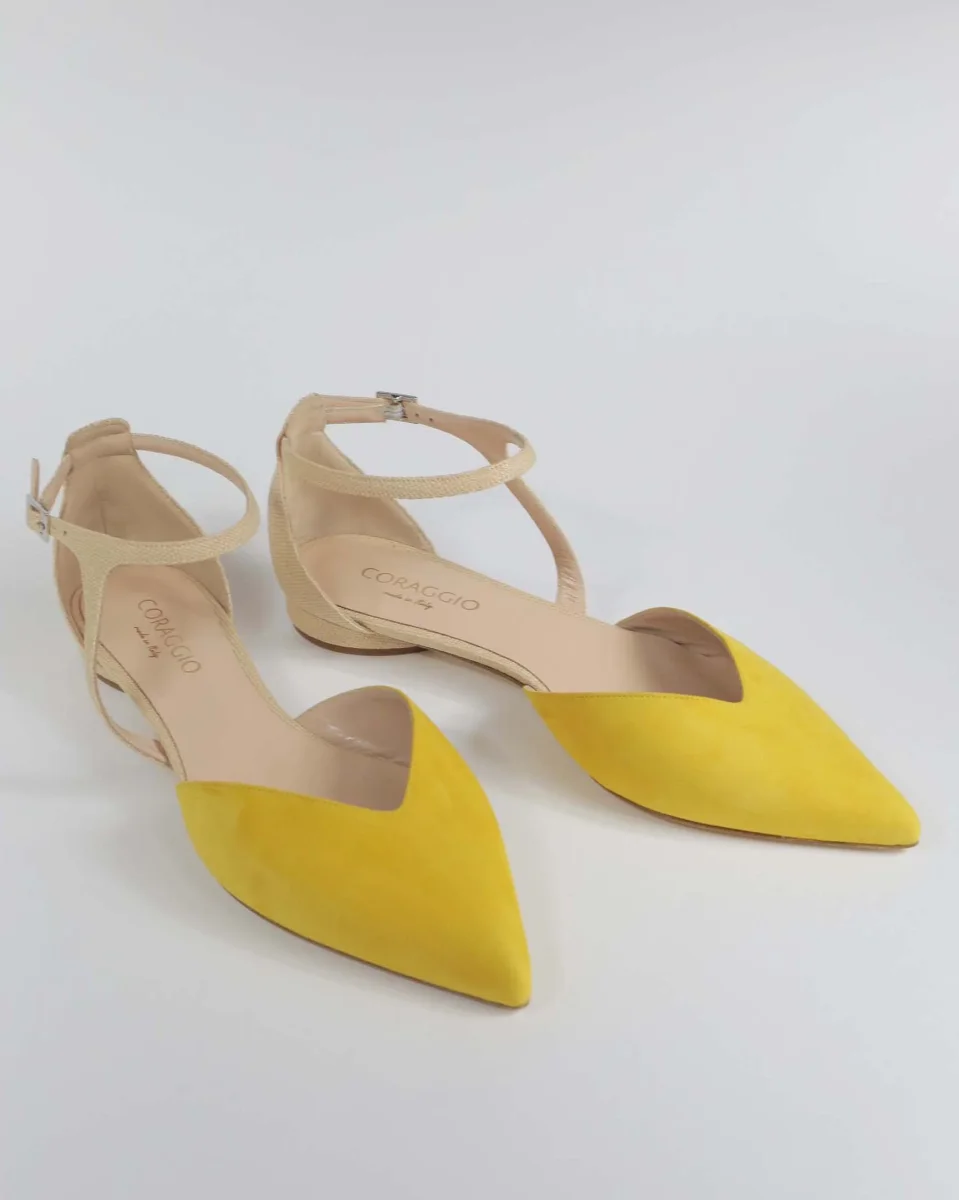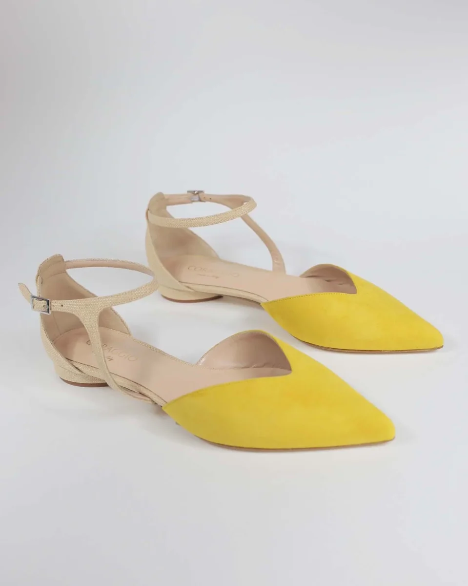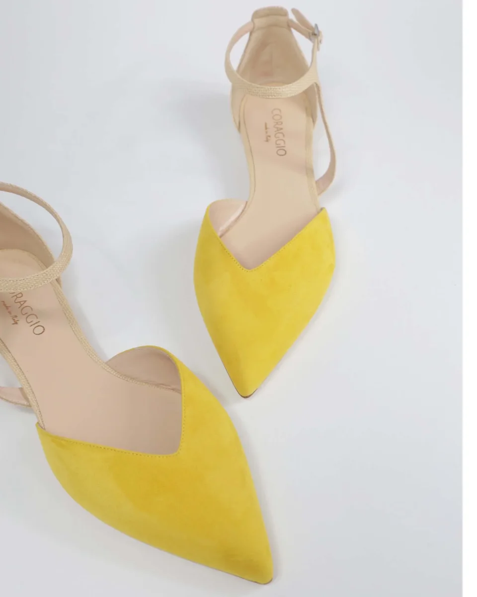 Le Ingrid colore sole prodotte artigianalmente ed in Italia con allacciatura alla caviglia sanno aggiungere un tocco raffinato al tuo stile, interpretano con carattere le tendenze del momento per donarti la sicurezza di cui hai bisogno per esprimere la tua individualità . Il tacco è di un centimetro ed è molto particolare a forma di goccia. Disponibili in altre varianti di colore.