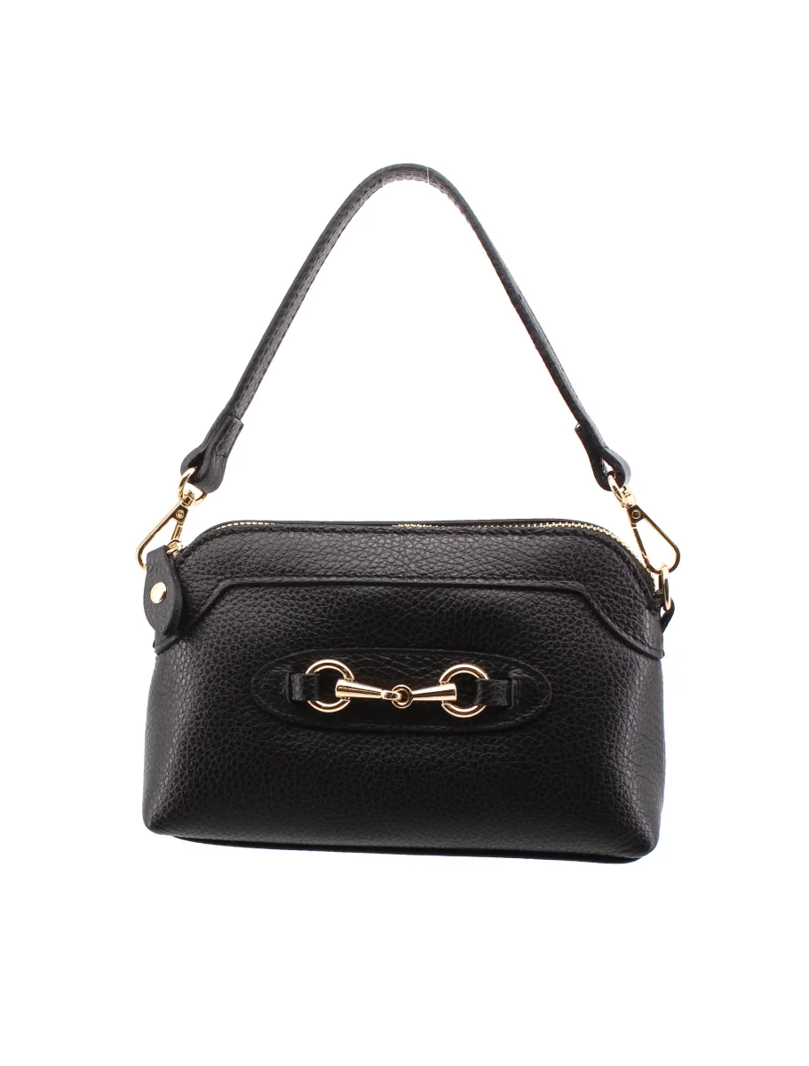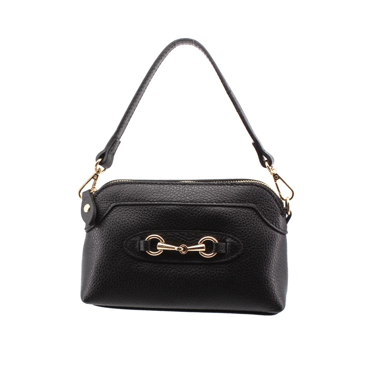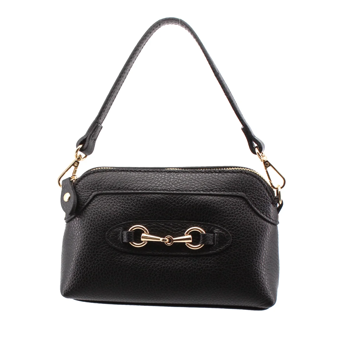 Borsa a mano da donna Laboratorio Artigianale Borse Isabel made in Italy in vera pelle con morsetto e dettagli oro, pratica chiusura con zip e tracolla in tinta regolabile e removibile.