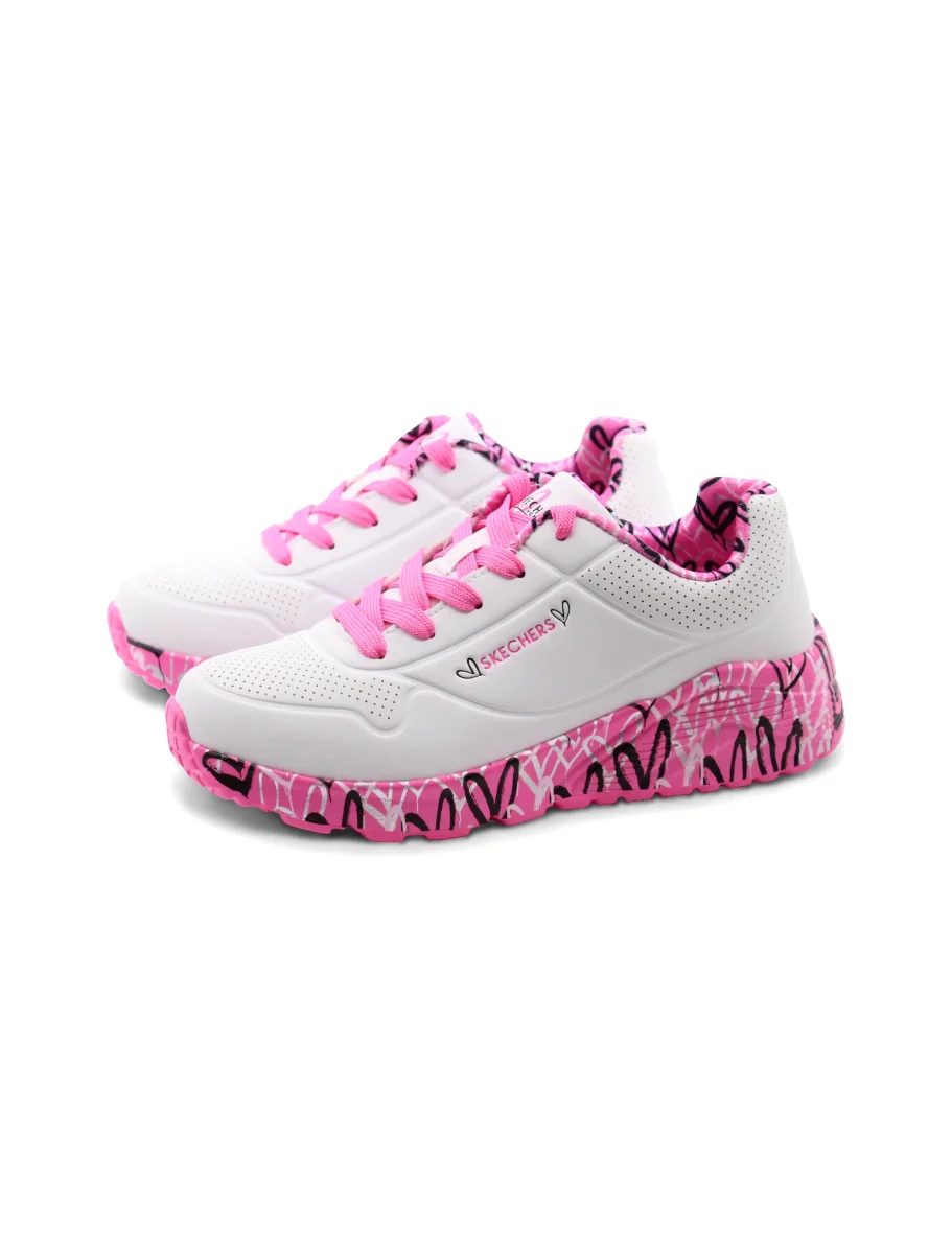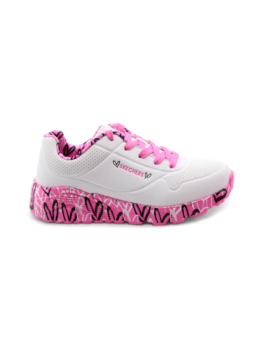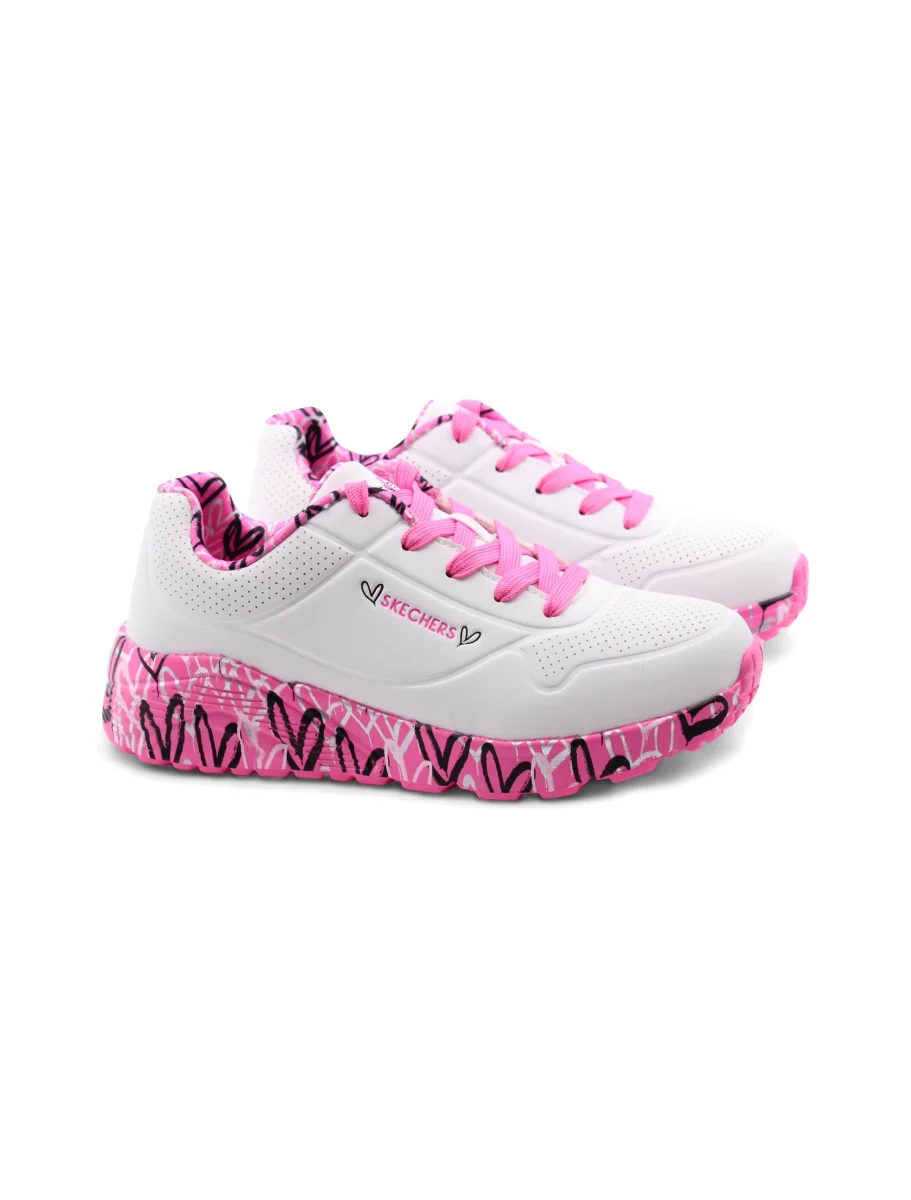 Le Lovely Luv sneaker bimba di Skechers sono pensate per accompagnare ogni piccolo passo con comfort e stile. La chiusura con lacci assicura una calzata personalizzata e sicura, perfetta per le avventure quotidiane.
