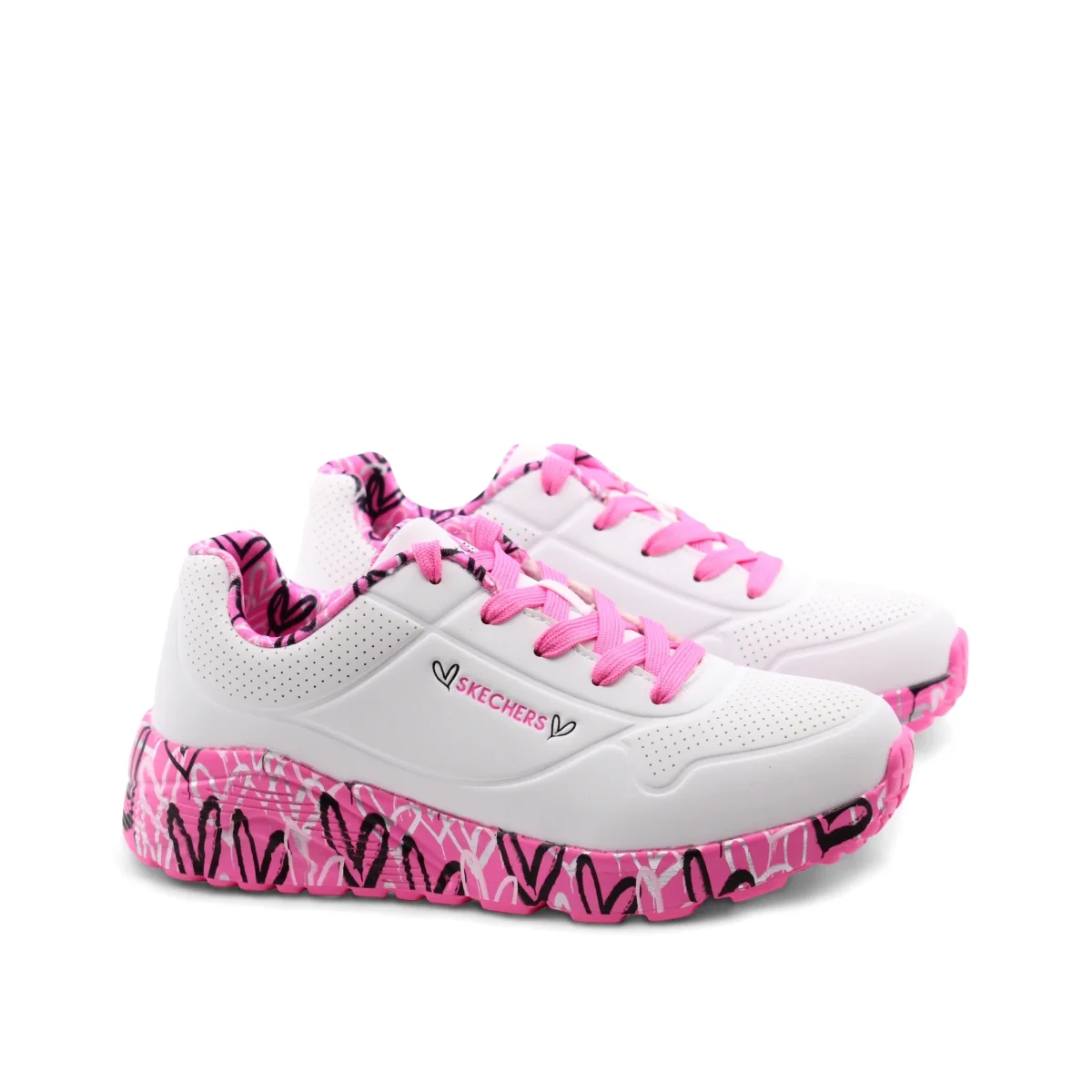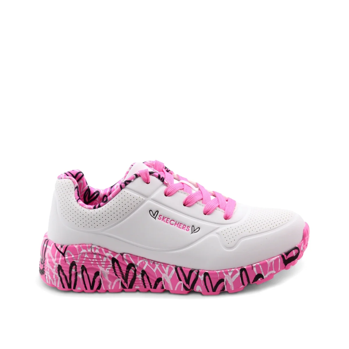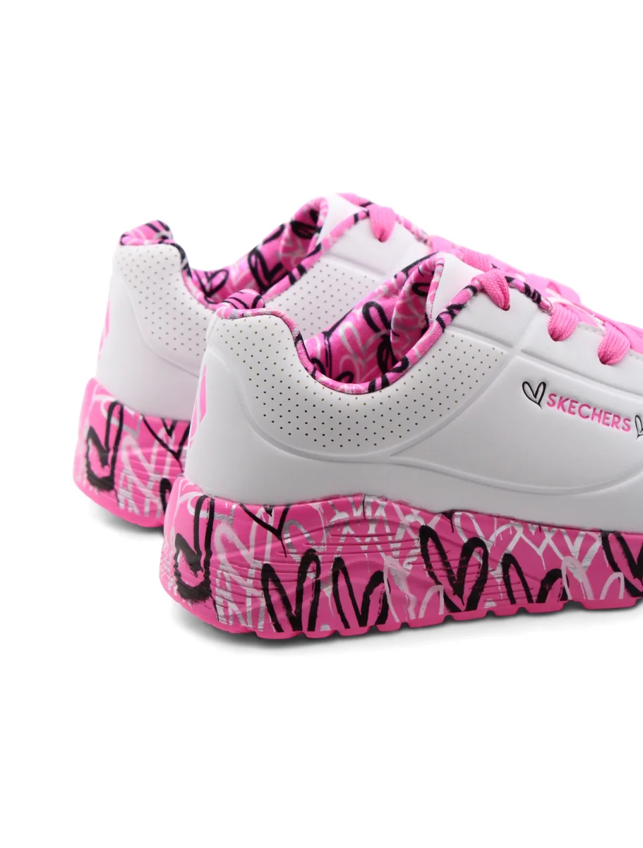 Le Lovely Luv sneaker bimba di Skechers sono pensate per accompagnare ogni piccolo passo con comfort e stile. La chiusura con lacci assicura una calzata personalizzata e sicura, perfetta per le avventure quotidiane.