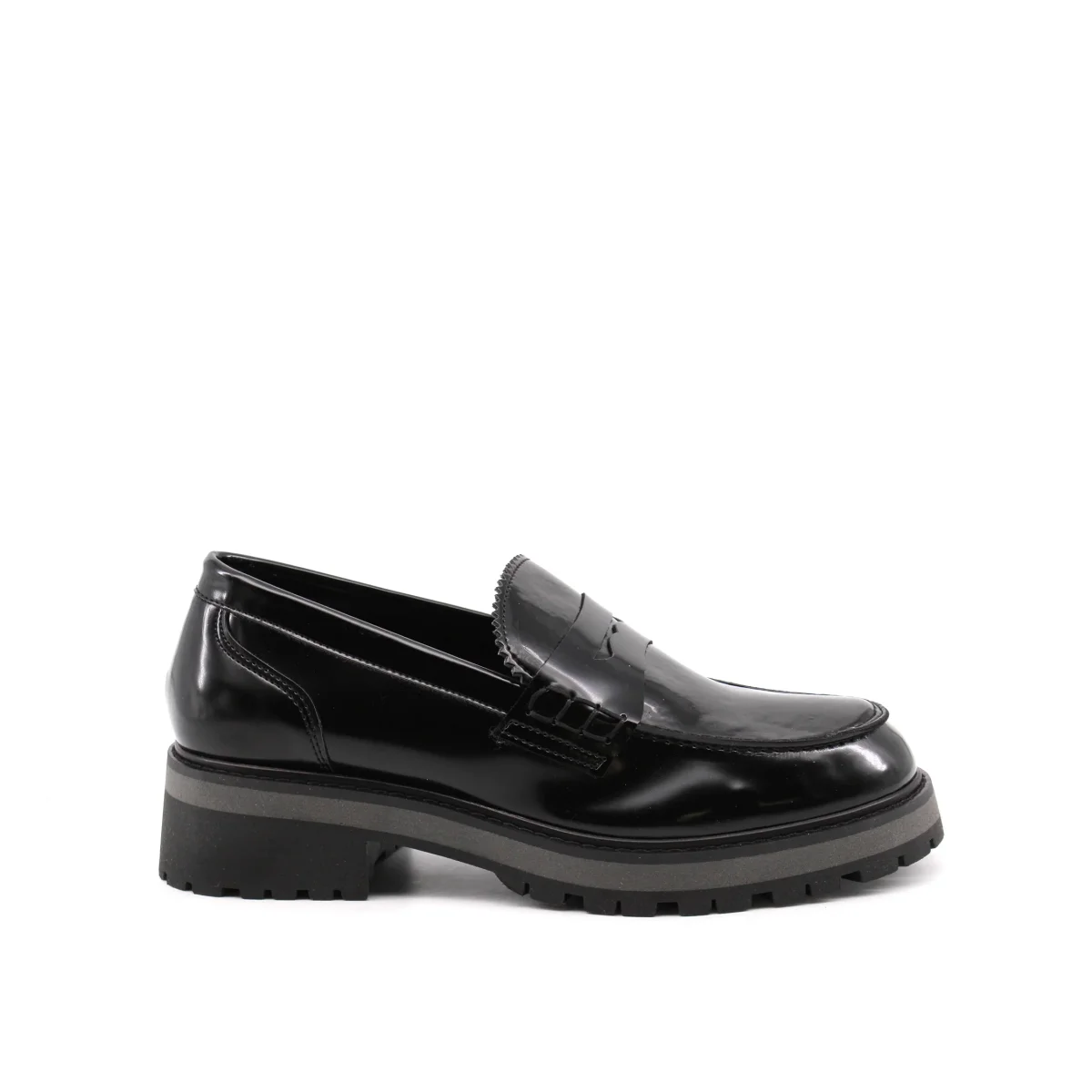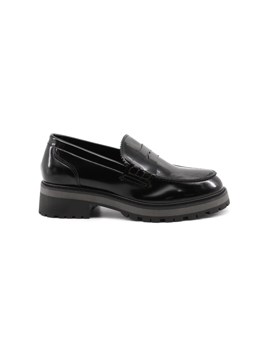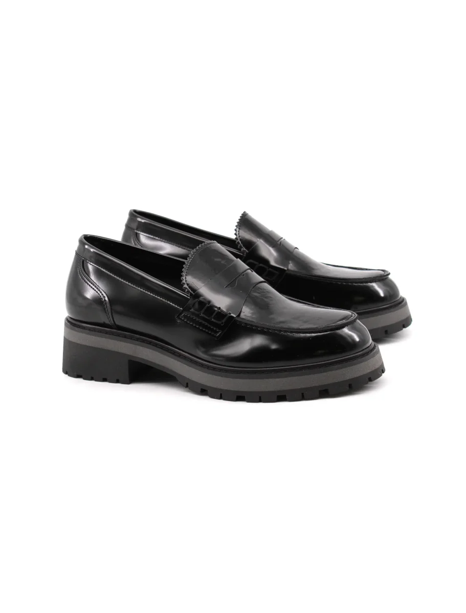 Mocassino chunky da donna Conte’ Studio 1978 made in Italy con tomaia in pelle sintetica con finitura lucida, morbido sottopiede in vera pelle e suola carrarmato in gomma con tacco alto 4,5cm. Comodo e alla moda.