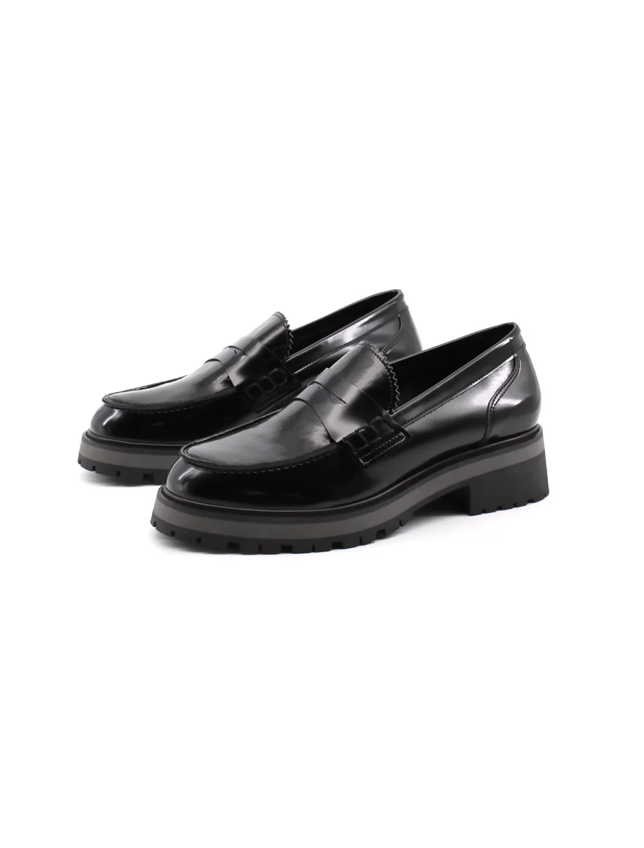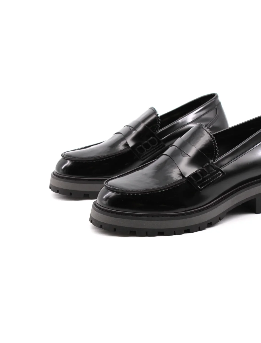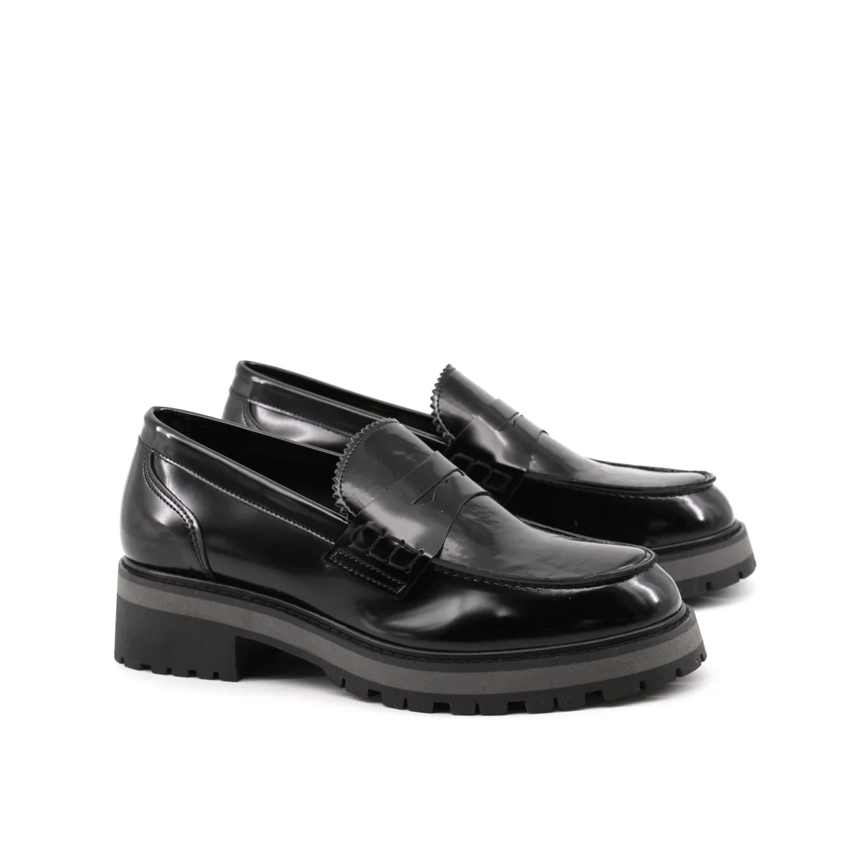 Mocassino chunky da donna Conte’ Studio 1978 made in Italy con tomaia in pelle sintetica con finitura lucida, morbido sottopiede in vera pelle e suola carrarmato in gomma con tacco alto 4,5cm. Comodo e alla moda.