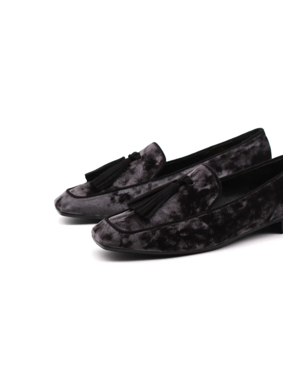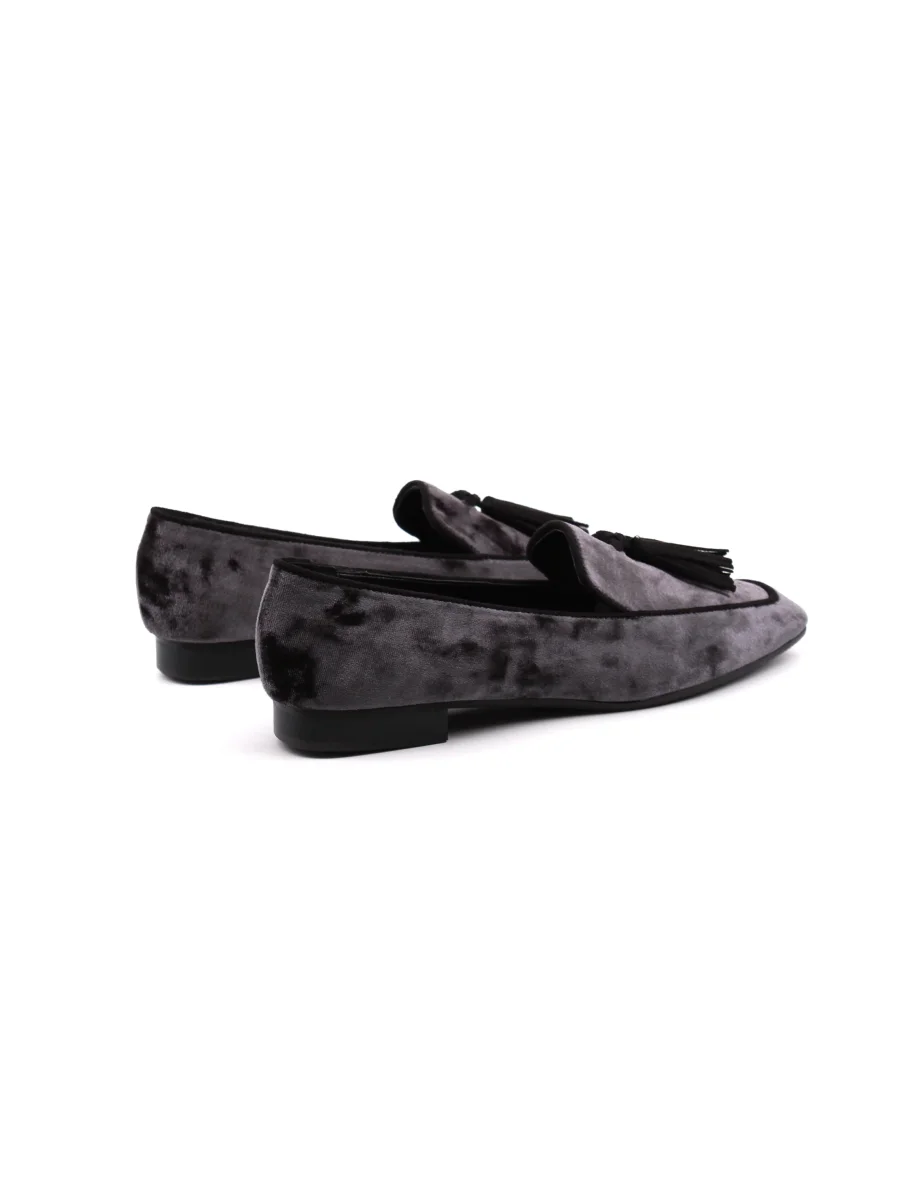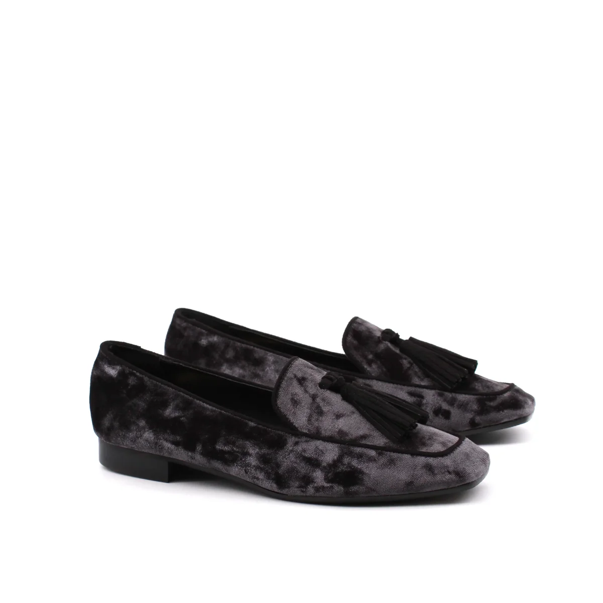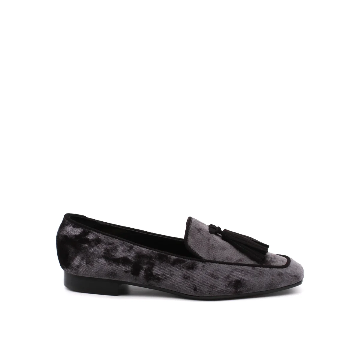 Conte’ Studio 1978 mocassino da donna con tomaia in tessuto con nappine, morbido sottopiede in vera pelle e suola in gomma. Comodo ed elegante. Made in Italy.