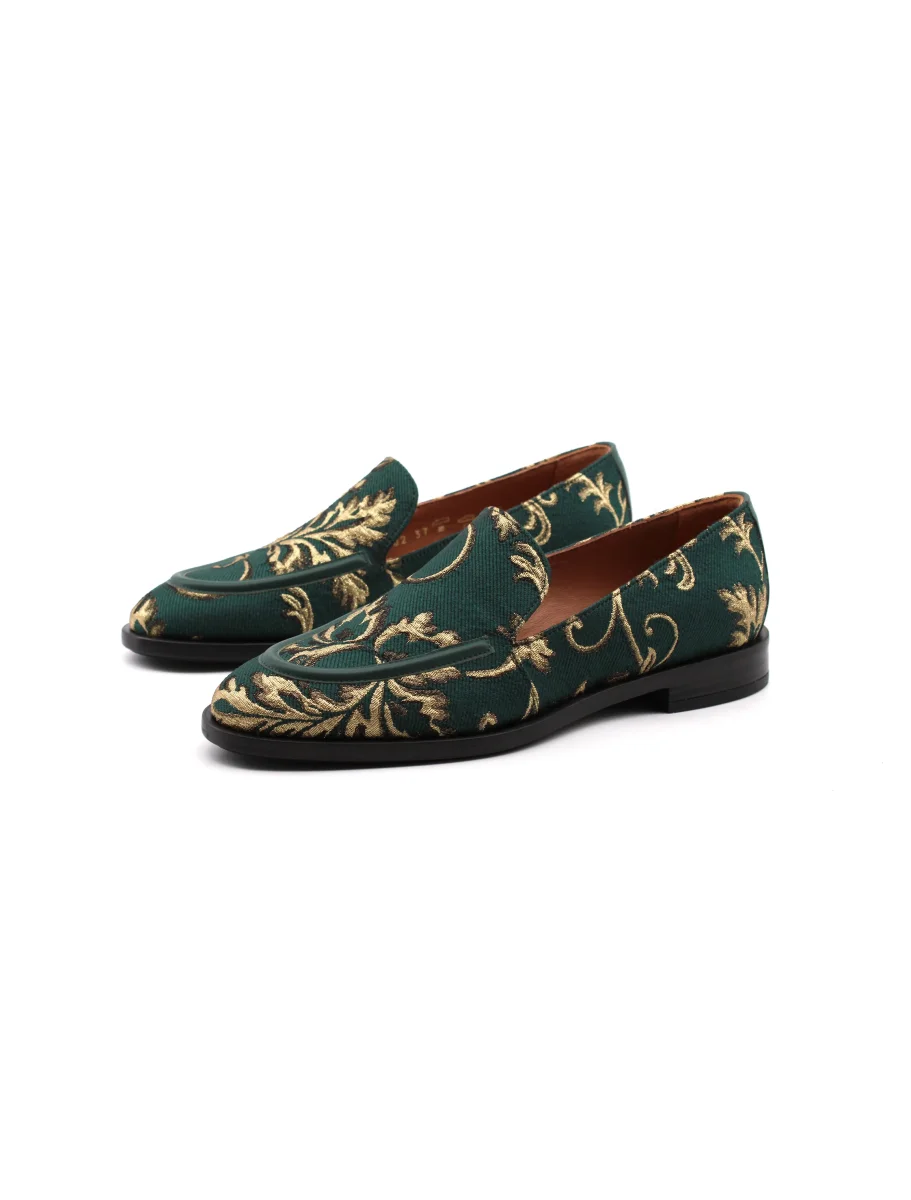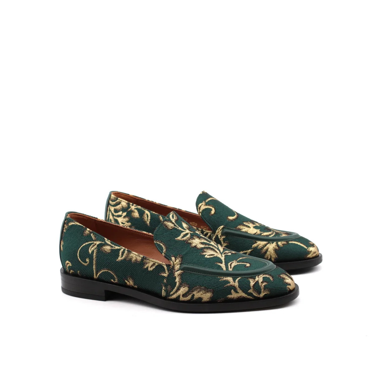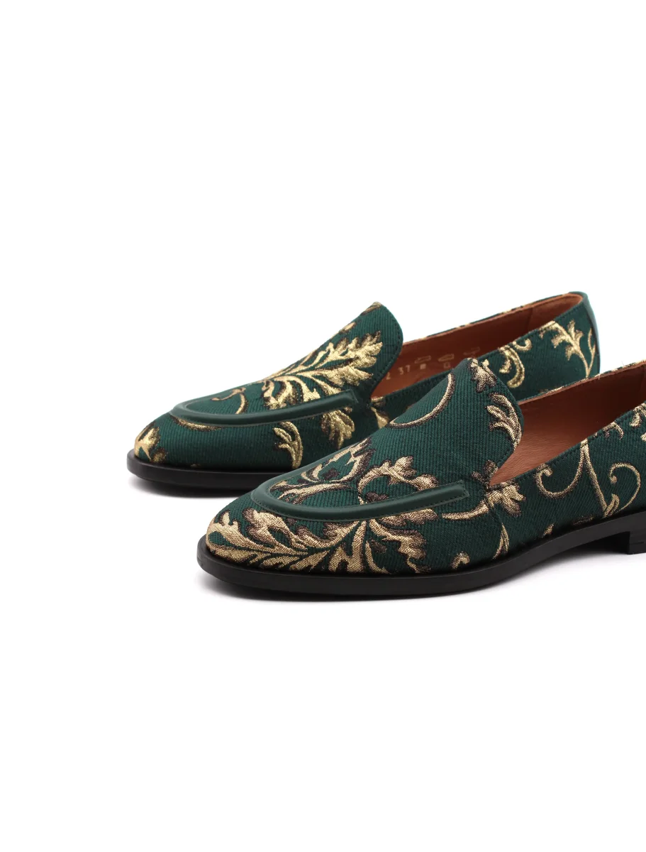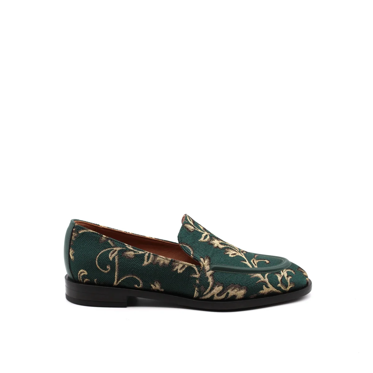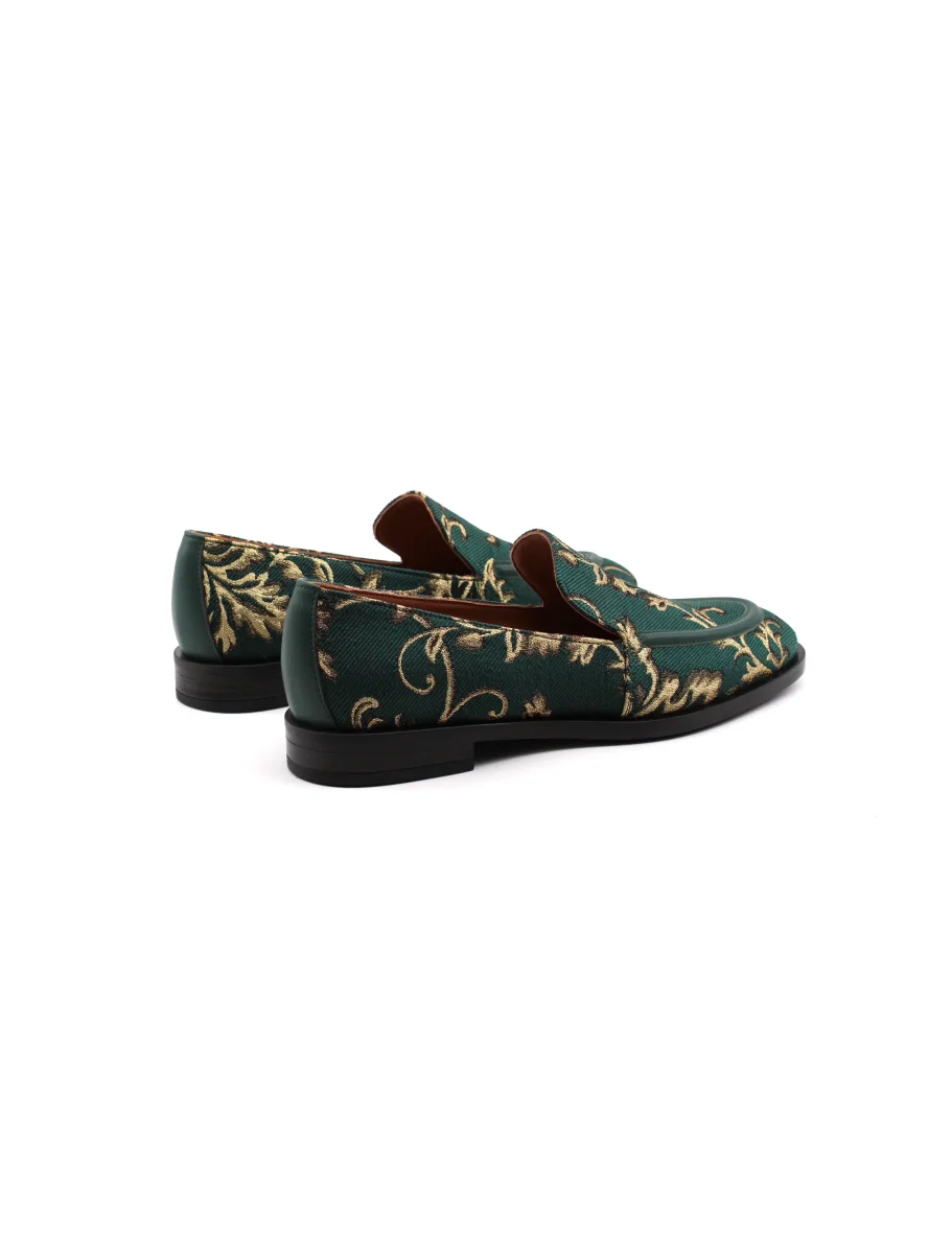 Frau mocassino da donna con tomaia in tessuto jacquard damascato, morbido sottopiede e fodera in vera pelle e suola in gomma. Donerà un tocco sofisticato ad ogni look. Made in Italy.