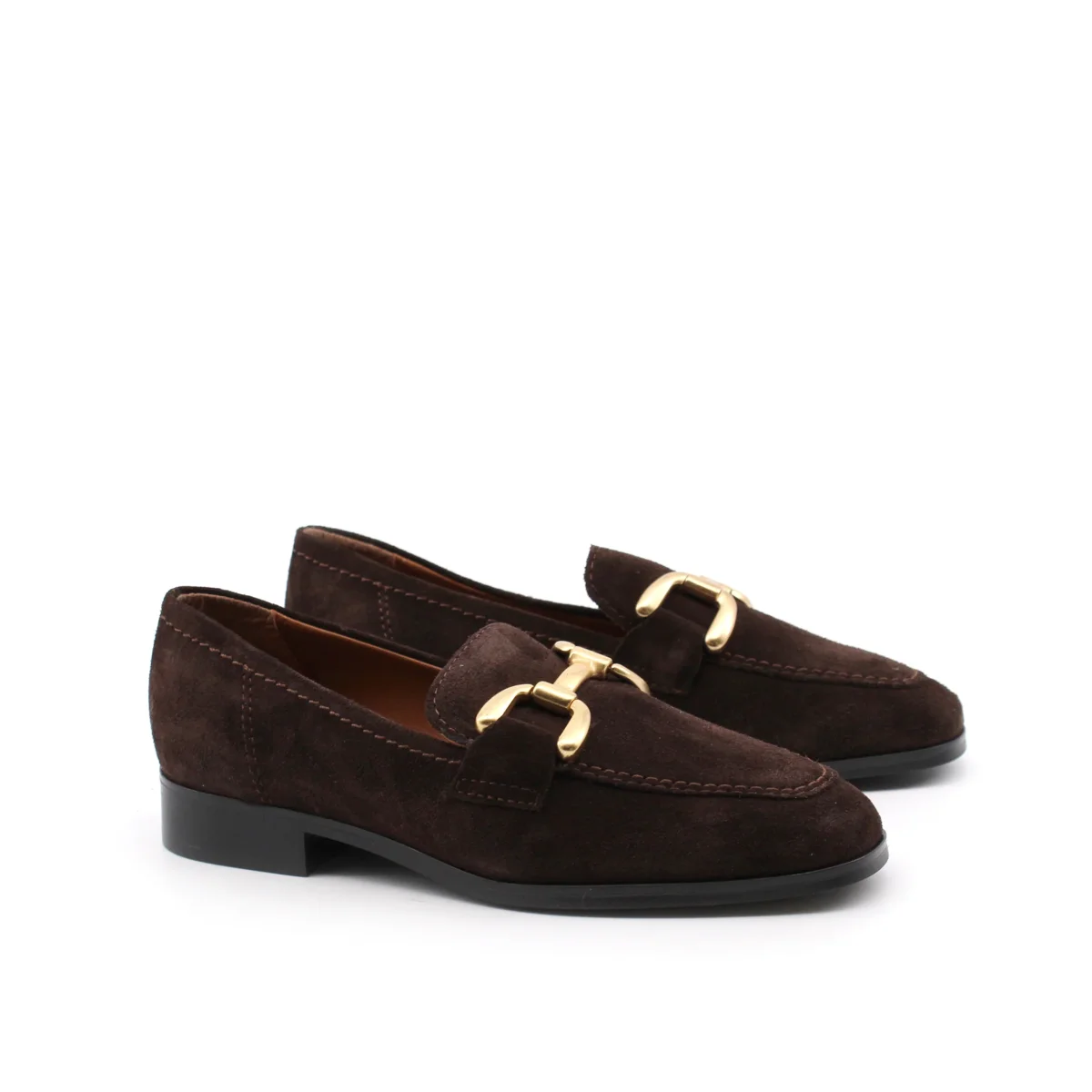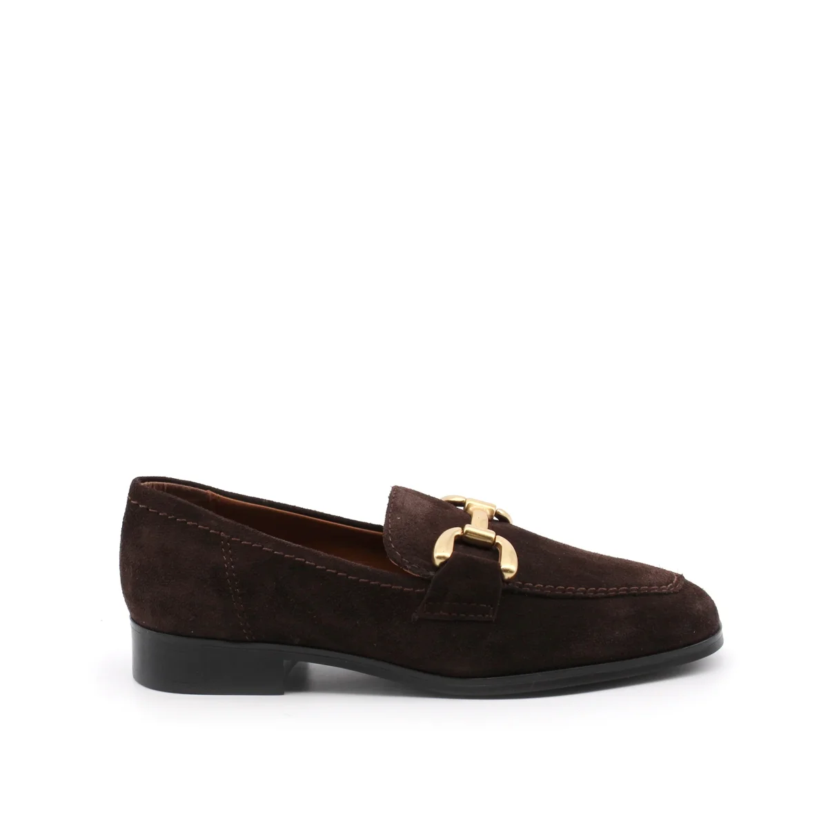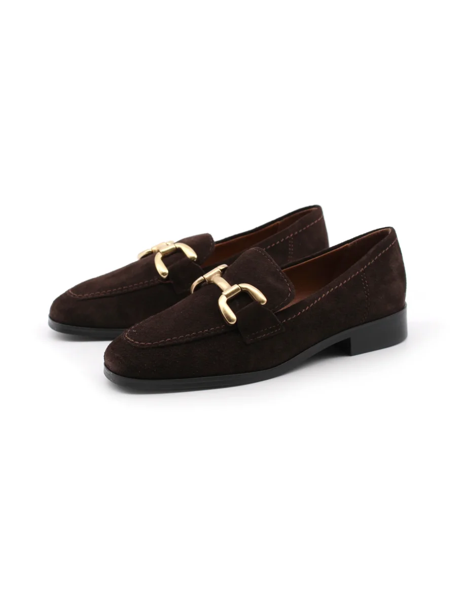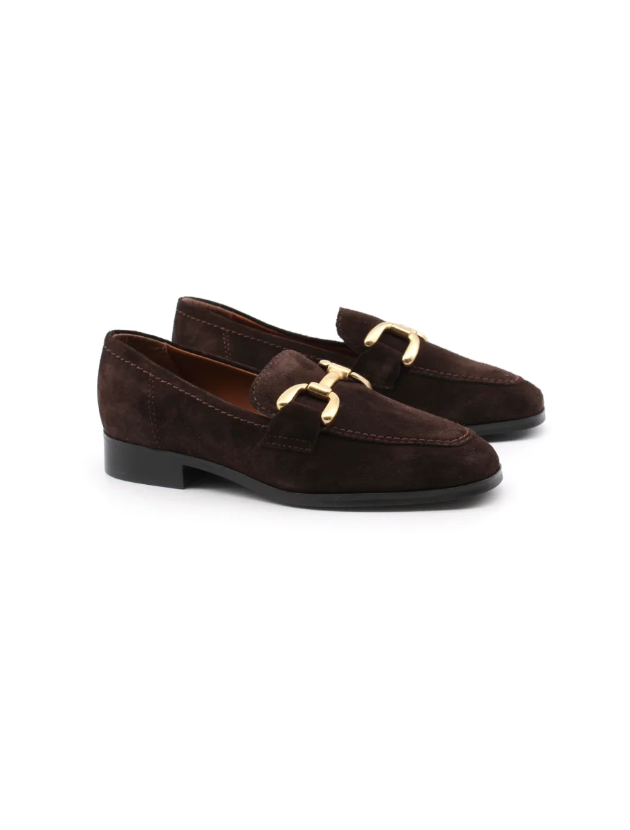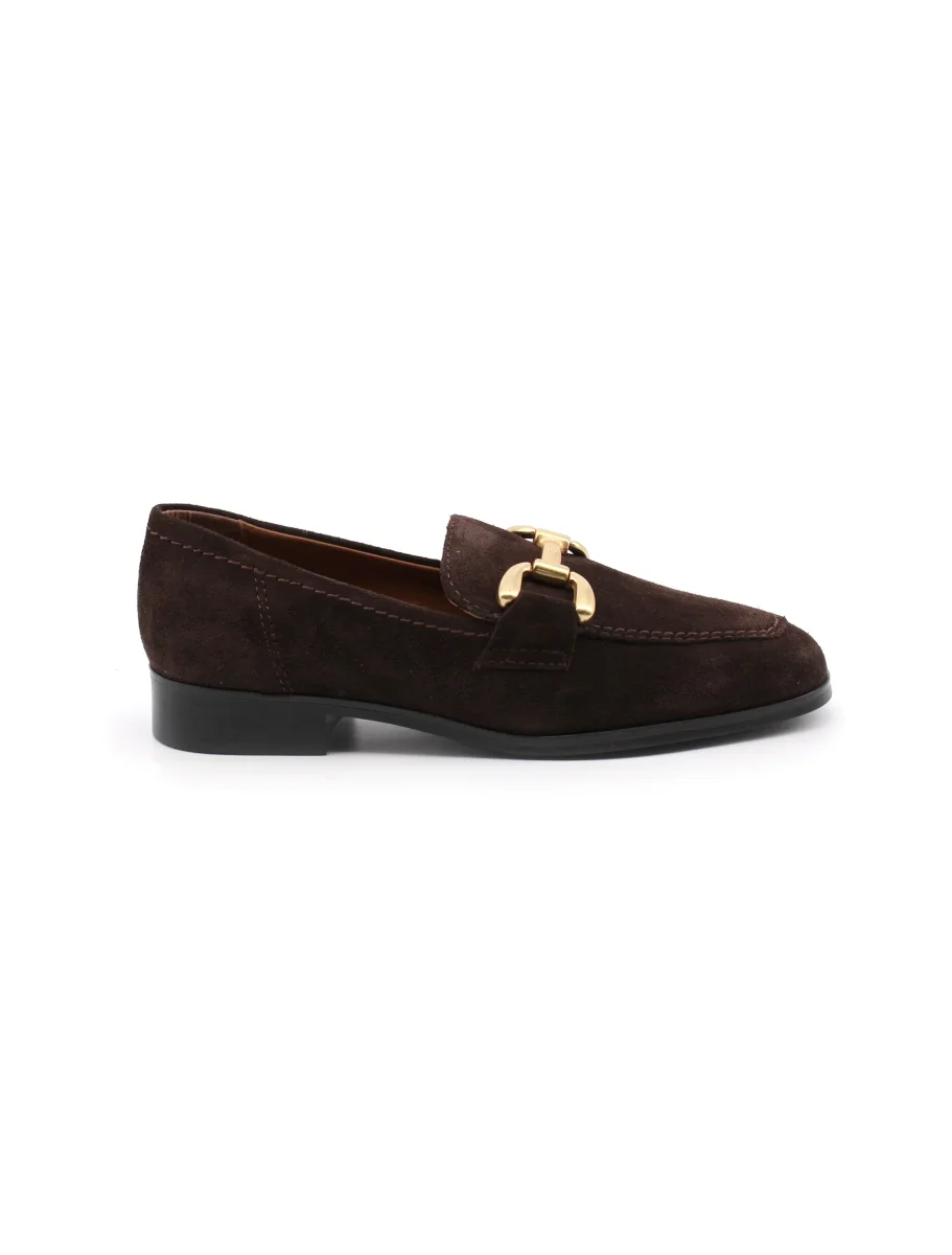 Francesco Brunelli mocassino da donna in vera pelle con morsetto metallico dorato, morbido sottopiede in vera pelle e suola in gomma. Comodo ed elegante. Perfetto in ogni occasione.