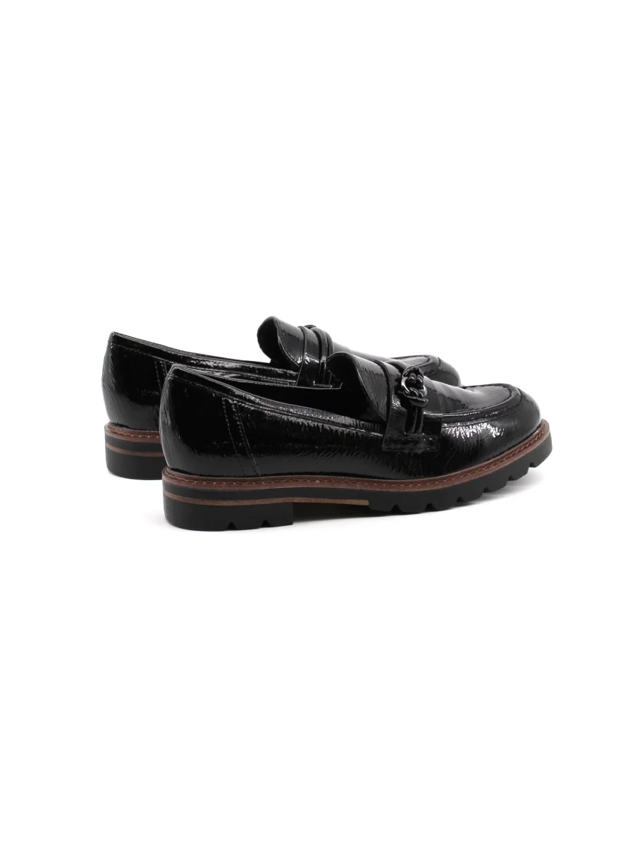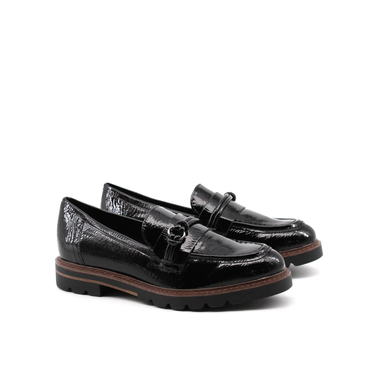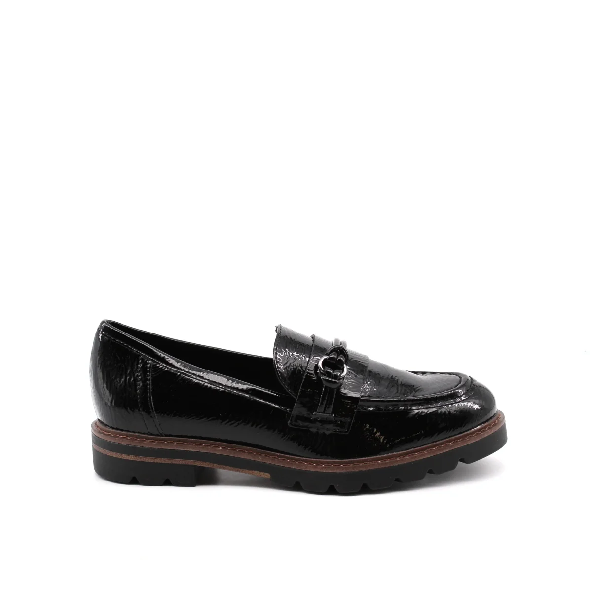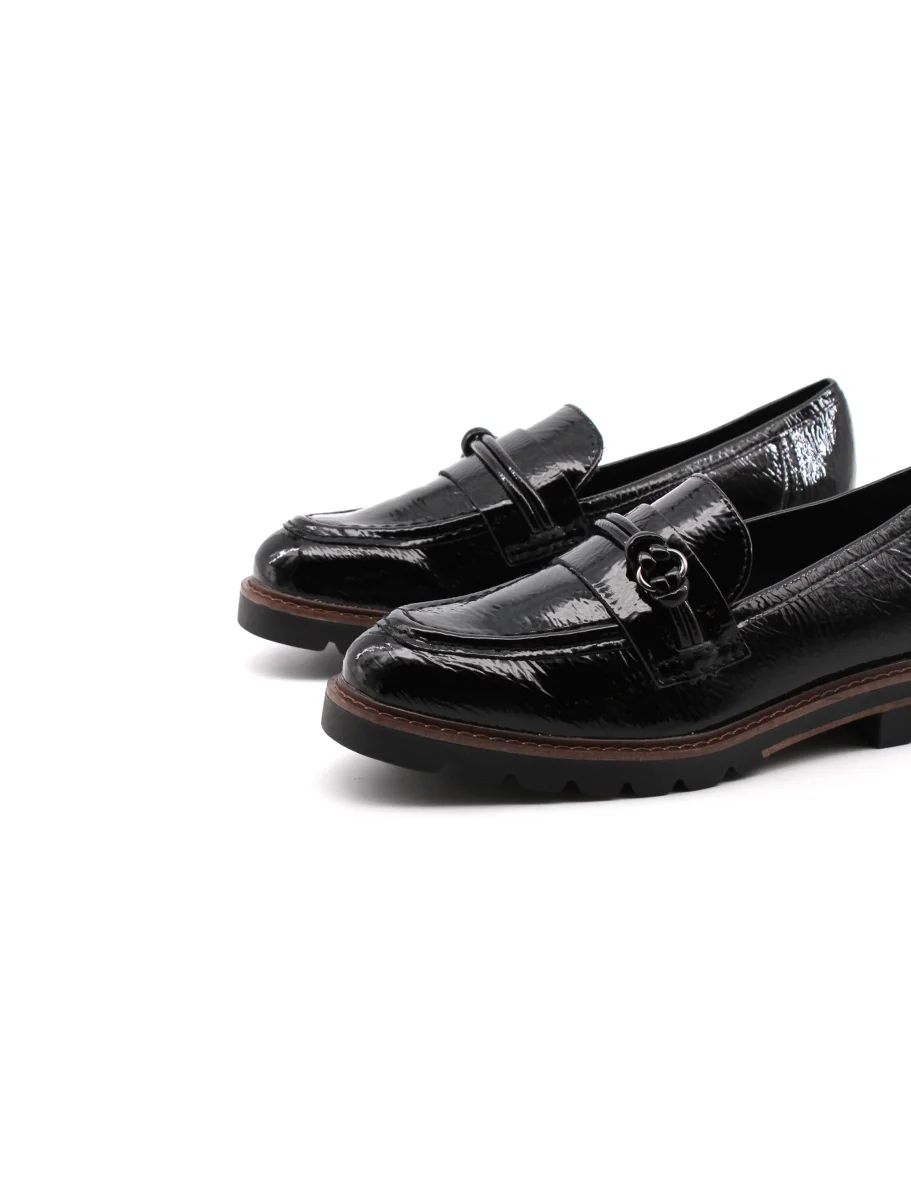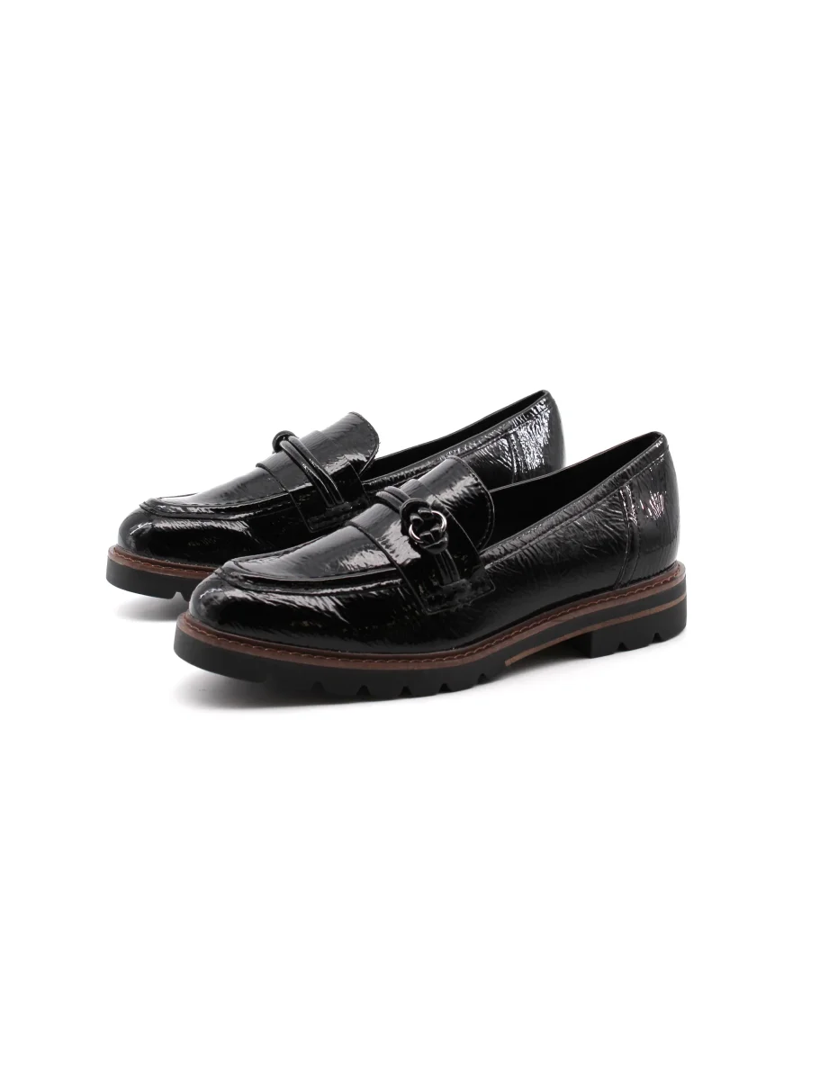 Marco Tozzi mocassino da donna in vernice con morbido sottopiede in pelle sintetica e suola carrarmato in gomma. Alla moda, comodo e versatile.