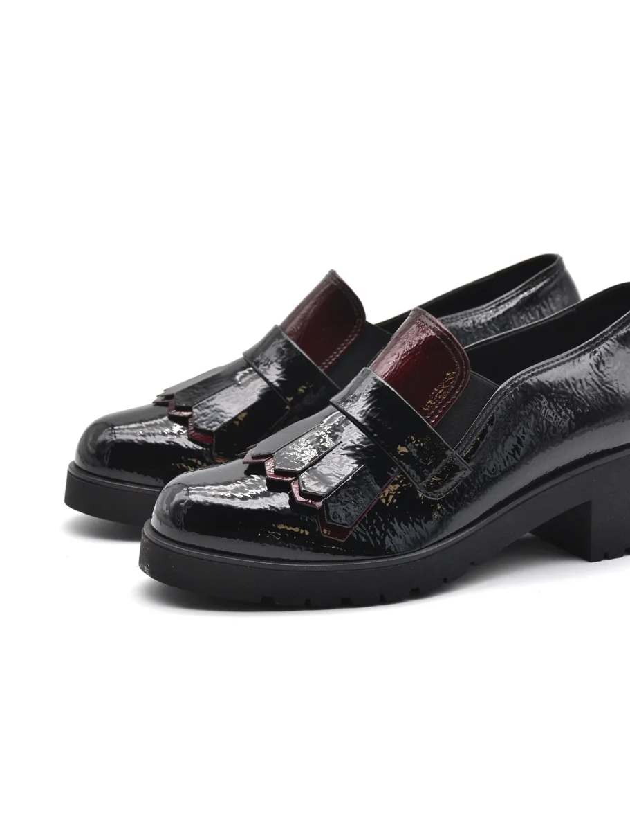 Mocassino donna Conte’ Studio 1978 made in Italy in vernice con morbido sottopiede in vera pelle e frange. Comodo e versatile