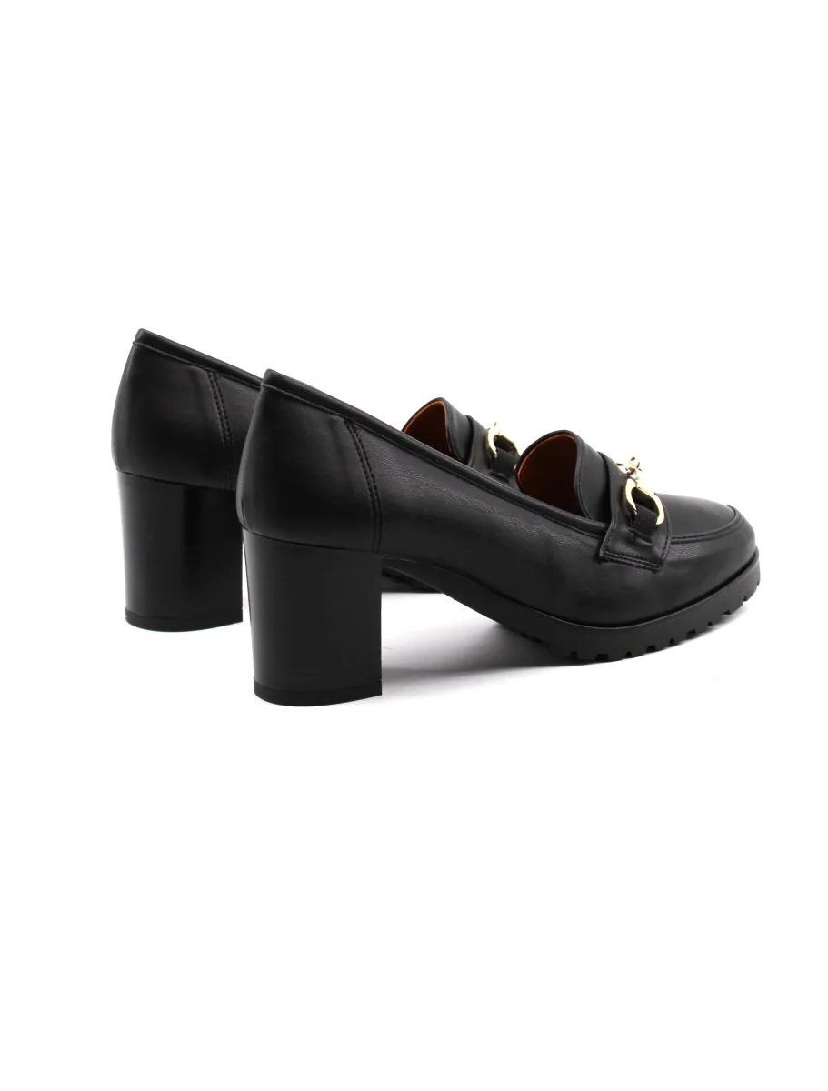 Conte’ mocassino da donna con tomaia in pelle sintetica con morsetto metallico, soffice sottopiede memory in vera pelle e suola in gomma con tacchetto. Made in Italy.