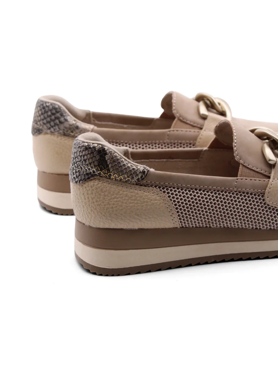 Cerca un mocassino comodo e alla moda? Questo mocassino vegan con catena di Jana è esattamente ciò di cui hai bisogno. La fodera in tessuto è pensata per offrirti il massimo del comfort, garantendo una piacevole sensazione al tatto che ti accompagna durante tutta la giornata.