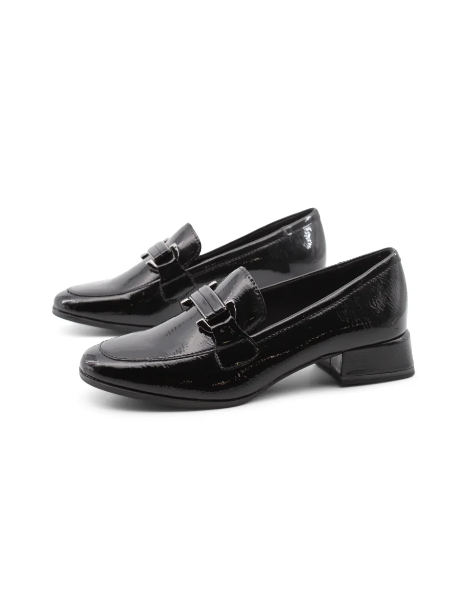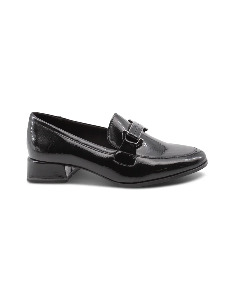 Il mocassino vegan in vernice nera di Marco Tozzi è la scelta perfetta per chi cerca stile e comfort in un unico paio di scarpe. La tomaia in vernice non solo è elegante, ma offre anche un tocco di brillantezza che si sposa bene con qualsiasi outfit, sia casual che più formale.