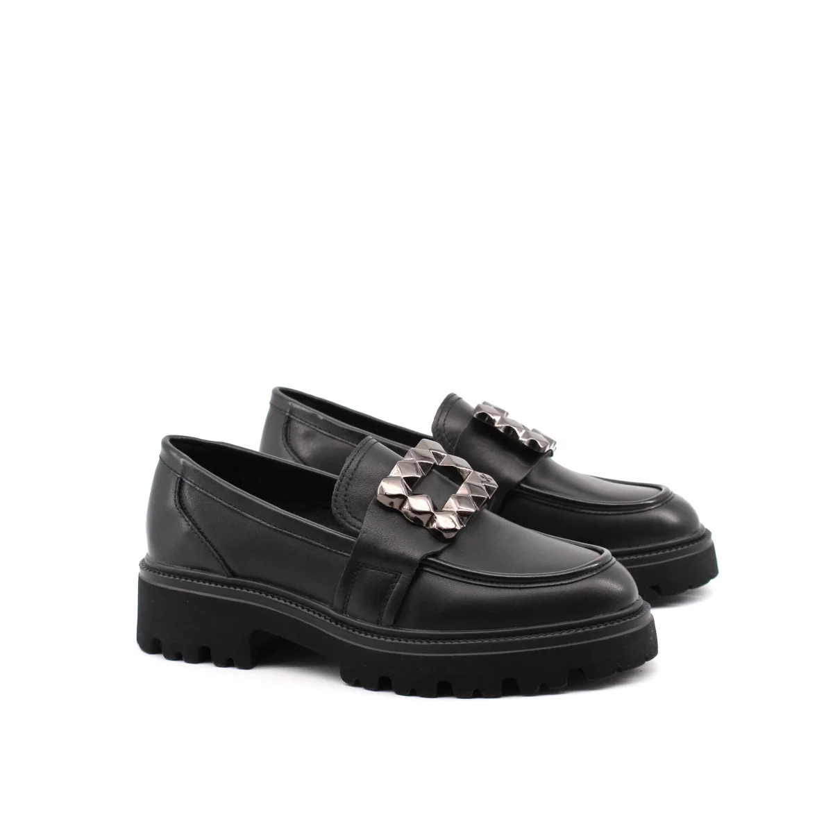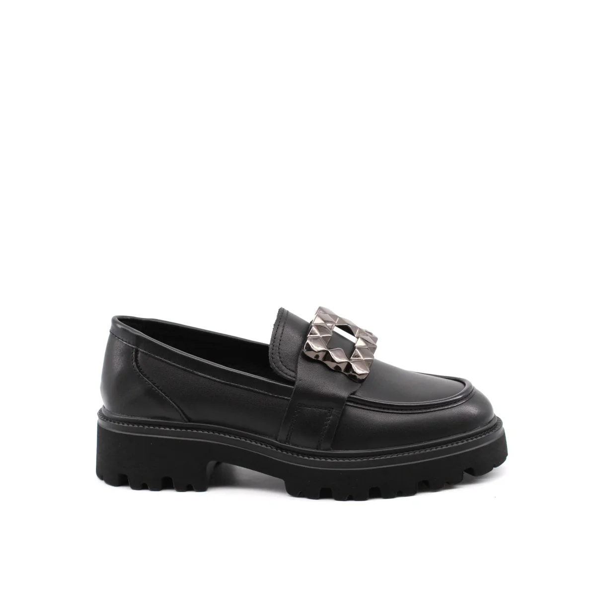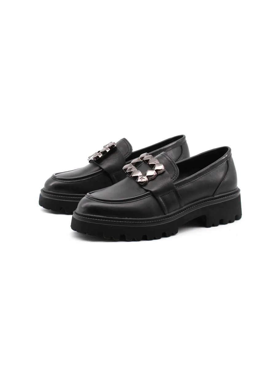 Keys mocasssino da donna in vera pelle e pelle sintetica con accessorio, plantare in pelle sintetica e suola carrarmato in gomma. Comodo e alla moda.