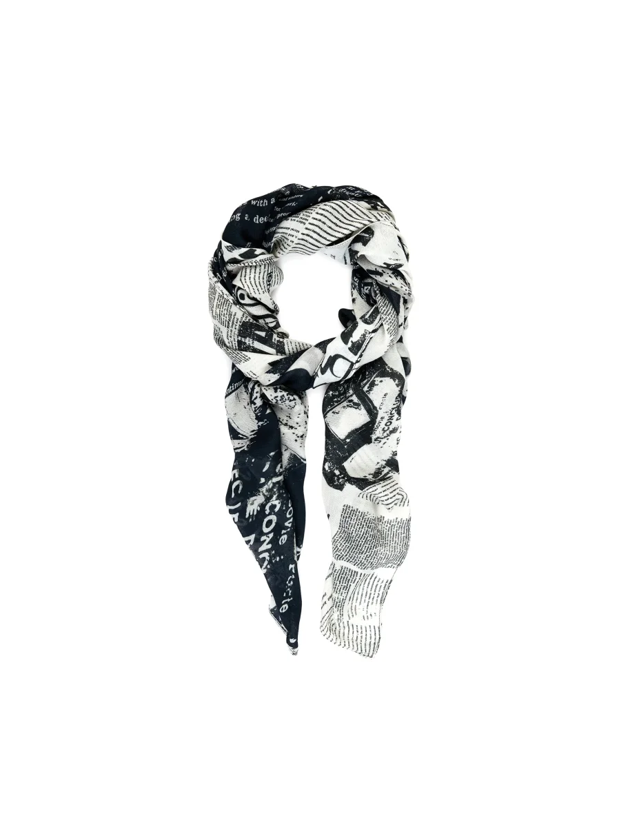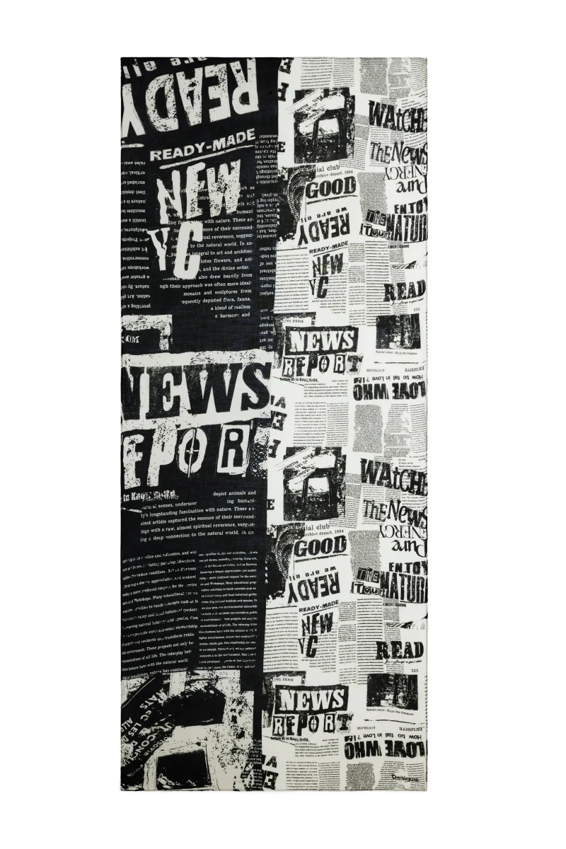 Newspaper foulard da donna firmato Desigual, pensato per chi cerca un accessorio leggero ma d’effetto. Realizzato in viscosa, ha una mano morbida e una caduta naturale che lo rende comodo da indossare tutto il giorno. La stampa “newspaper” regala un tocco grafico e moderno senza essere eccessiva, adatta a outfit casual o più curati.