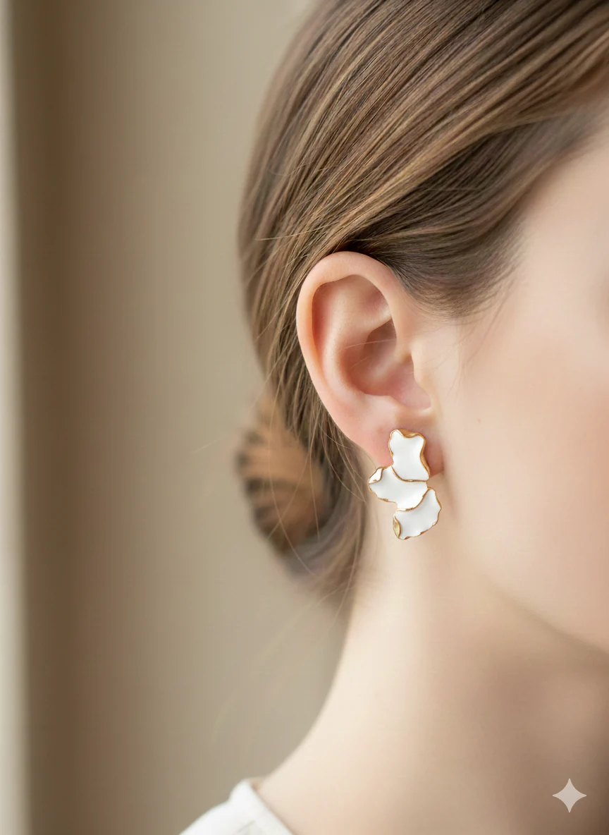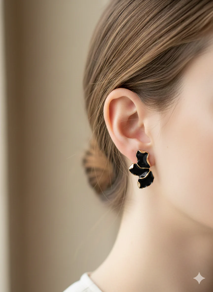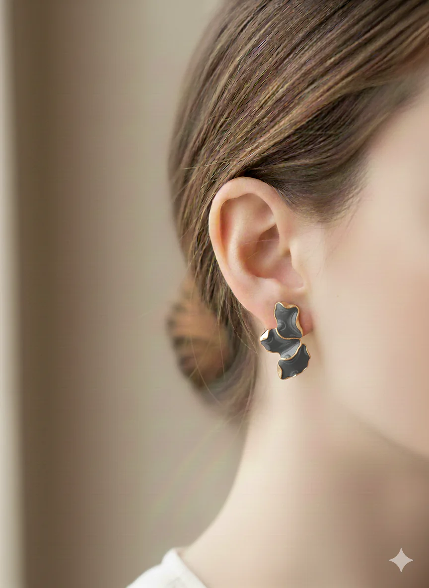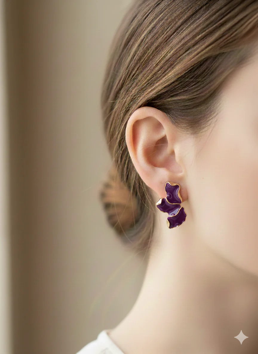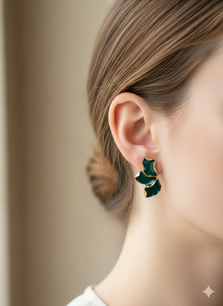 Orecchini dalla linea elegante e sofisticata, caratterizzati da un design a foglia che cattura la luce con grazia. Disponibili in una selezione di colori per adattarsi a ogni stile e occasione, questi accessori combinano versatilità e raffinatezza. Perfetti per chi ricerca un tocco di classe nel proprio look quotidiano o per completare un outfit speciale. La forma delicata e le finiture curate garantiscono un accessorio di qualità che valorizza il viso con discrezione e eleganza.