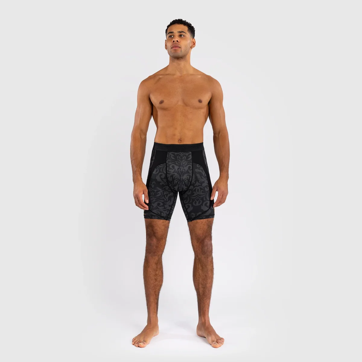 I pantaloncini a compressione Venum x Topuria Unmatched sono degli shorts tecnici ispirati allo stile di Ilia “El Matador” Topuria, indomito fighter dei pesi piuma UFC. Questi pantaloncini Vale Tudo sono realizzati in una combinazione di poliestere ed elastane: il tessuto leggero e resistente offre compressione moderata e effetto seconda pelle. Perfetti per MMA, No-gi e condizionamento, donano supporto e libertà totale di movimento. Le cuciture rinforzate resistono agli allenamenti intensi, mentre le grafiche nero-oro eleganti e decise omaggiano il campione UFC. Indossali per i tuoi allenamenti per avere sostegno costante e sensazione premium a ogni round.