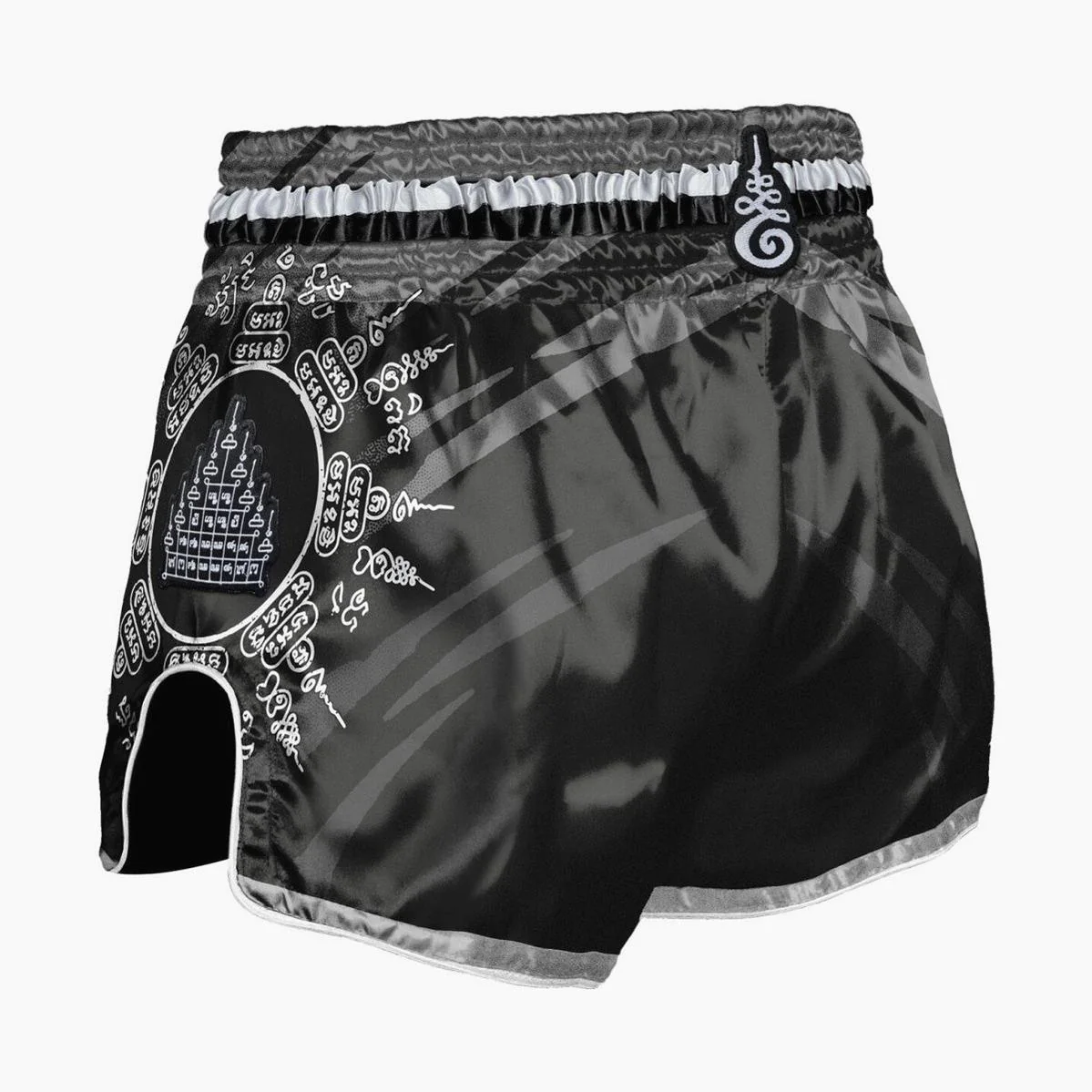 I Pantaloncini kick-thai 8 Weapons 8 Ways Yant portano nel ring tutta l’energia spirituale dei Sak Yant, i tatuaggi tradizionali thailandesi pensati per offrire protezione contro la sfortuna e le influenze negative. Il Pead Tidt Yant, protagonista del design, simboleggia l’universo in tutte le direzioni e offre protezione a 360°, rappresentando anche otto raffigurazioni del Buddha. Fatti a mano in Thailandia in satin premium, offrono un tocco morbido e resistente, ideale per allenamenti e competizioni. Gli spacchi laterali alti garantiscono massima mobilità nei calci e nelle ginocchiate, mentre la fascia in vita stretta assicura una vestibilità comoda e stabile anche a ritmi elevati. Completano il capo doppie cuciture e patch di qualità , per un look che unisce forza, tradizione e durata.