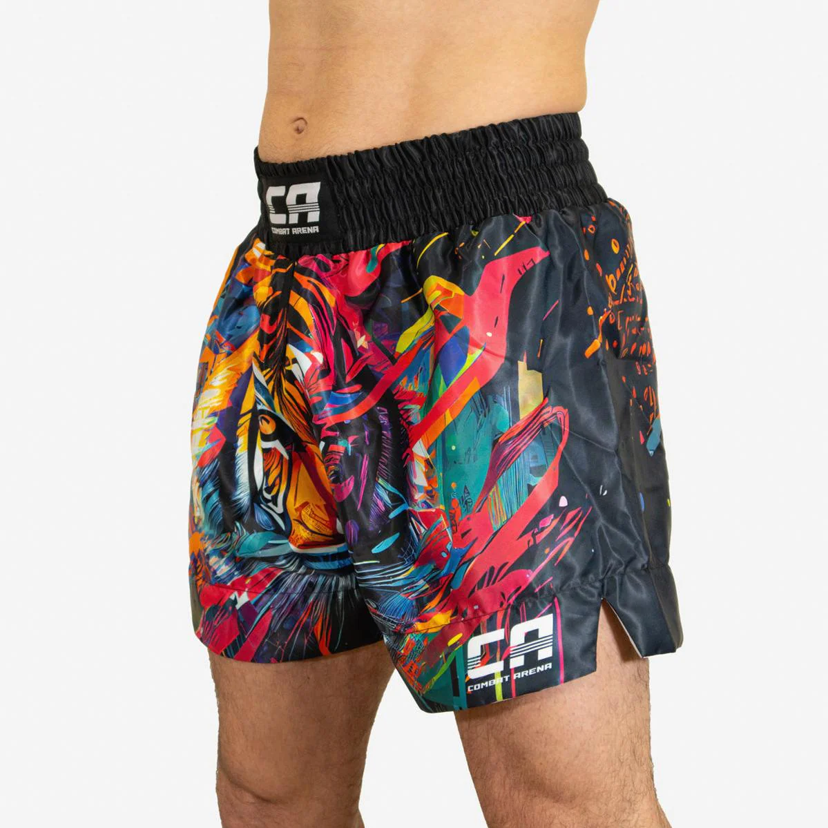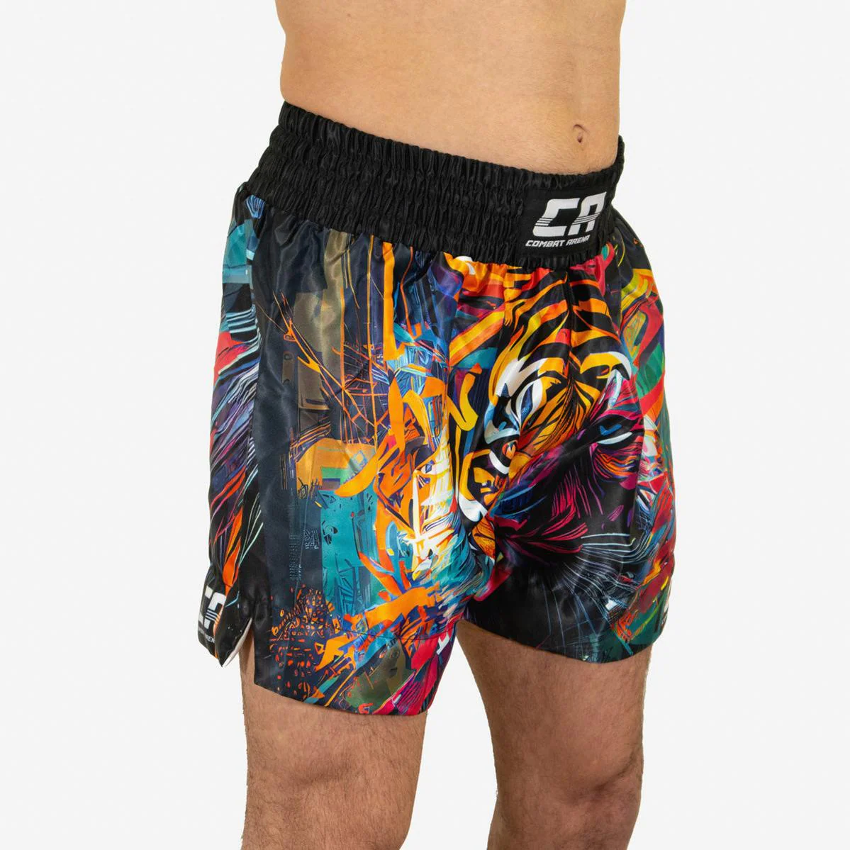 I Pantaloncini Kick-Thai Combat Arena Tiger Blaze sono progettati per chi desidera distinguersi sul ring. Il motivo grafico a tema tigre caratterizza il pantaloncino grazie a un’ampia stampa sublimata, dai colori sgargianti e accesi. Il tuo look parla di te, e questi shorts esprimono la tua determinazione, forza e ferocia. Realizzati in satin ultra-resistente, con cintura elastica in vita e spacchetti laterali, per accompagnarti in modo eccezionale durante allenamenti e competizioni.