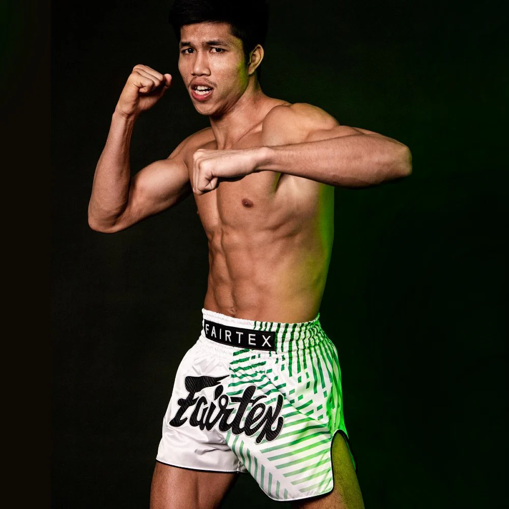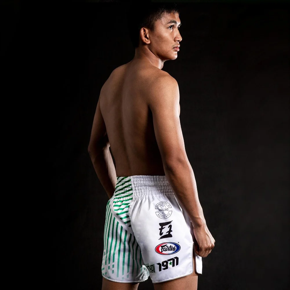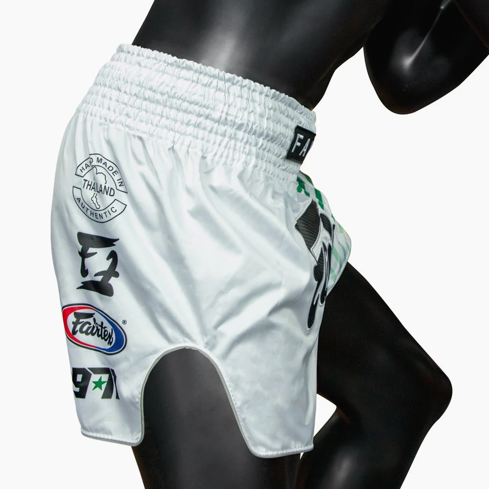 I Pantaloncini Kick-Thai Fairtex BS1923 Racer Bianco sono ideali per atleti che cercano mobilità e agilità nella Muay Thai e Kick Boxing. Questi shorts sono realizzati in satin (raso), un tessuto noto per la sua eccezionale durata e la sensazione di lusso che conferisce, migliora le prestazioni complessive dei pantaloncini. In vita è presente una cintura elastica con otto file di cuciture e laccetto interno, ai lati sono presenti gli spacchi profondi e comodi, che ti permettono di eseguire in tutta libertà calci e ginocchiate. Le finiture a contrasto con piping donano uno stile ancora più ricercato. Realizzati in Thailandia.