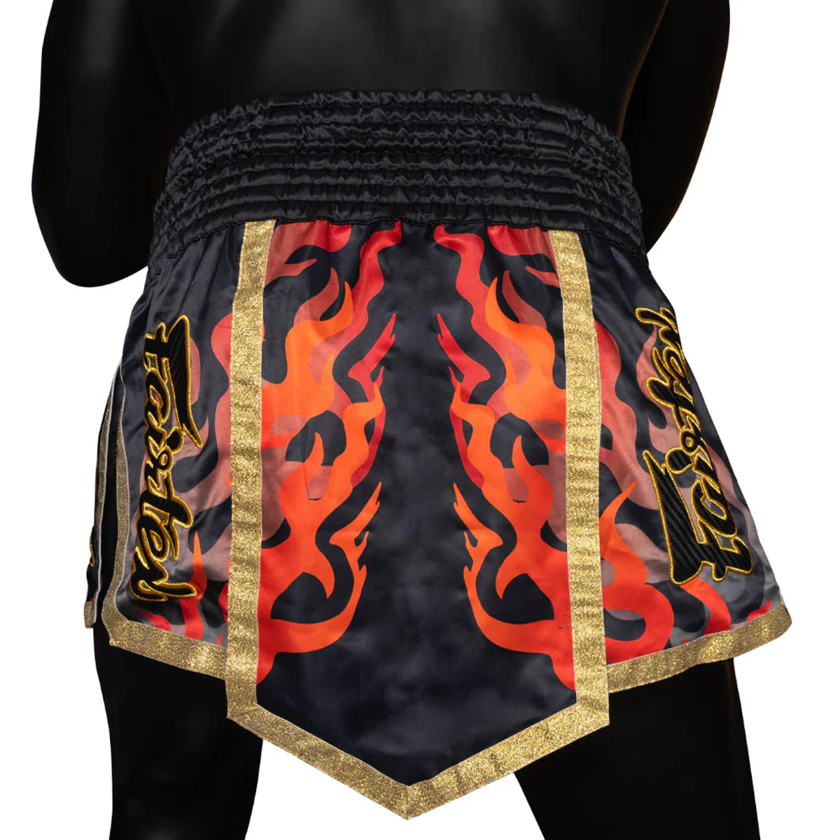 I Pantaloncini kick-thai Fairtex BS2501 Aquila Edizione Limitata accendono il tuo look con una grafica fiamme su raso nero e finiture dorate: stile guerriero che si vede da lontano. Progettati per Muay Thai e Kickboxing, nascono per chi vuole presenza scenica e performance. Questo modello senza fodera interna, consigliamo di abbinarlo a pantaloncini a compressione.