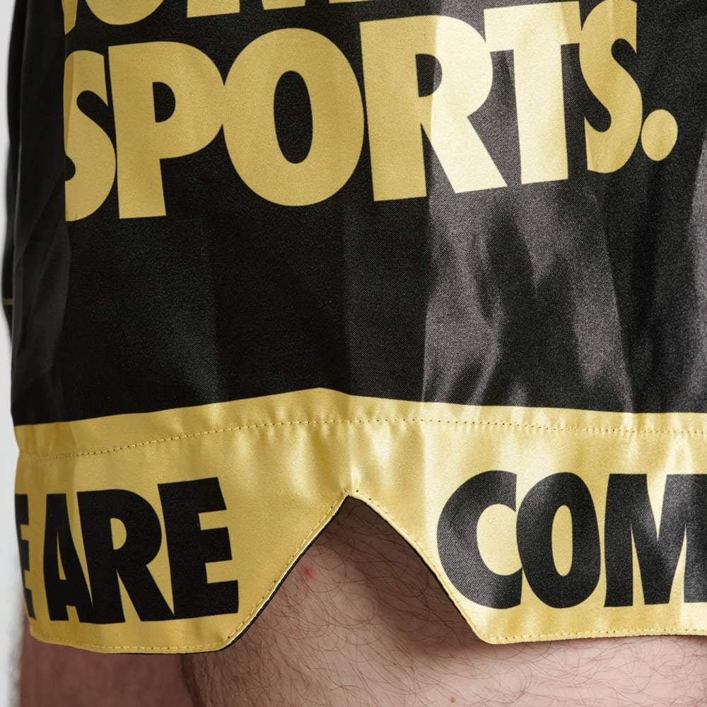 I Pantaloncini Leone DNA AB966 sono degli shorts da Kick boxing e Muay Thai che si distinguono per la combinazione di colori nero-oro, che ricorre in tutta la collezione DNA. Realizzati in satin, questi pantaloncini sono lucidi, grintosi e resistenti. Perfetti sia per gli allenamenti che per gli incontri, sono dotati di cintura elastica alta e spacchetti ai lati. Le grandi scritte dorate risaltano sul raso nero e danno agli shorts una personalità forte e definita. Perfetti per un look d’effetto.
