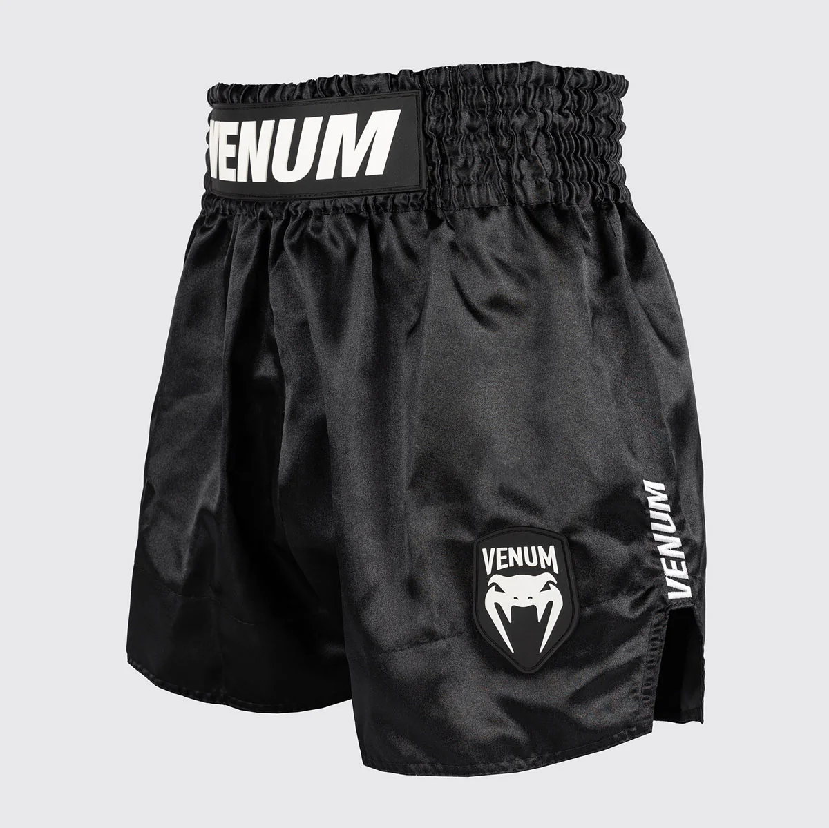 Cuciti a mano in Thailandia e realizzati in satin leggero e flessibile, offrono traspirabilità e asciugatura veloce anche negli allenamenti più dinamici. Gli spacchi laterali alti migliorano la libertà di movimento, mentre la vita tradizionale con coulisse garantisce supporto e aderenza ottimali. Il contrasto nero-bianco regala un’estetica pulita e professionale, completata dai loghi Venum ricamati su cintura e gamba. Pensati per offrire comfort avanzato e una vestibilità precisa, sono la scelta perfetta per praticanti di ogni livello, in allenamento o sul ring.