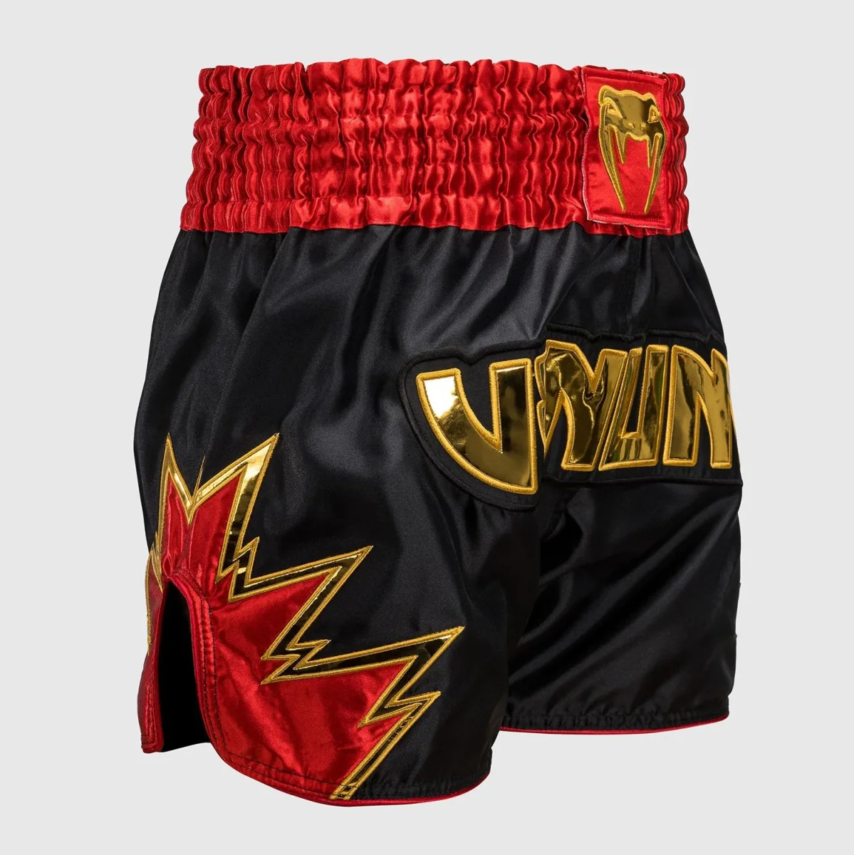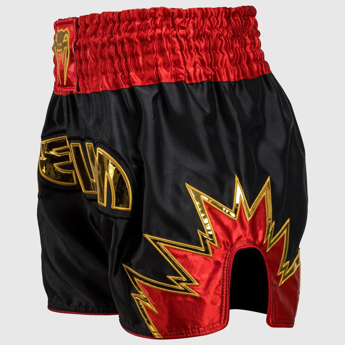 I Pantaloncini Kick-Thai Venum Inferno Nero Oro Rosso incarnano l’essenza della Muay Thai, progettati per atleti determinati a dominare il ring. Realizzati in Thailandia con tessuto leggero e flessibile, garantiscono comfort durante colpi e calci ad alta intensità . Gli spacchi laterali migliorano la libertà di movimento, mentre l’ampia fascia in vita tradizionale con coulisse regolabile assicura stabilità e aderenza ottimale. I dettagli logo Venum sul davanti e in vita esaltano un design audace, arricchito dalla combinazione cromatica nero-oro-rosso. Questi pantaloncini uniscono resistenza e stile, riflettendo l’eccellenza tailandese nella lavorazione. Venum conferma il suo impegno verso prodotti tecnici e innovativi, dedicati agli appassionati di arti marziali.