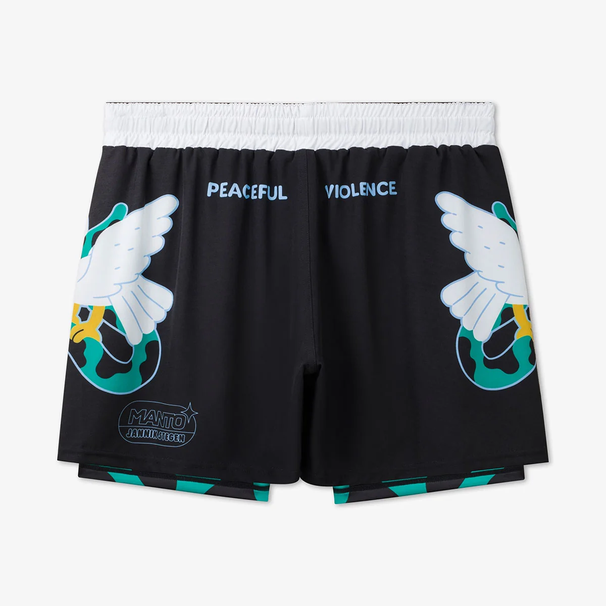 I pantaloncini MMA Manto DOVE nascono dalla collab con l’artista Jannik Stegen per unire funzionalità e stile sul tatami e in gabbia. Il design “2 in 1” offre uno strato interno che aggiunge copertura e stabilità, mentre lo strato esterno è leggero e resistente, così ti muovi libero in scramble, calci e takedown. La vita elastica con cordino e il grip in gel antiscivolo tengono tutto fermo anche nei round più intensi. La stampa sublimata non scolorisce e la tasca interna tiene al sicuro gli essenziali. Il mix poliestere e elastan è morbido, elastico e ad asciugatura rapida. Un must per MMA, grappling e condizionamento.