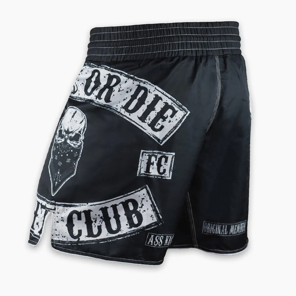 I Pantaloncini MMA Pride or Die Fight Club Nero sono pensati per professionisti, amatori e appassionati di sport da combattimento che desiderano distinguersi. Ispirati ai codici dei “Motorcycle Clubs”, questi pantaloncini celebrano la comunità e la passione per il combattimento, diventando un must-have per chi pratica MMA, grappling o kickboxing, sia per piacere che a livello professionale. Realizzati in microfibra di poliestere al 100%, offrono resistenza e leggerezza. La cintura elastica con cordino garantisce una vestibilità precisa, mentre la fascia in lycra all’interno del cavallo e le fessure laterali assicurano massima mobilità . Le finiture “piping” proteggono dall’usura anticipata, e il design completamente sublimato mantiene colori vivaci e duraturi.