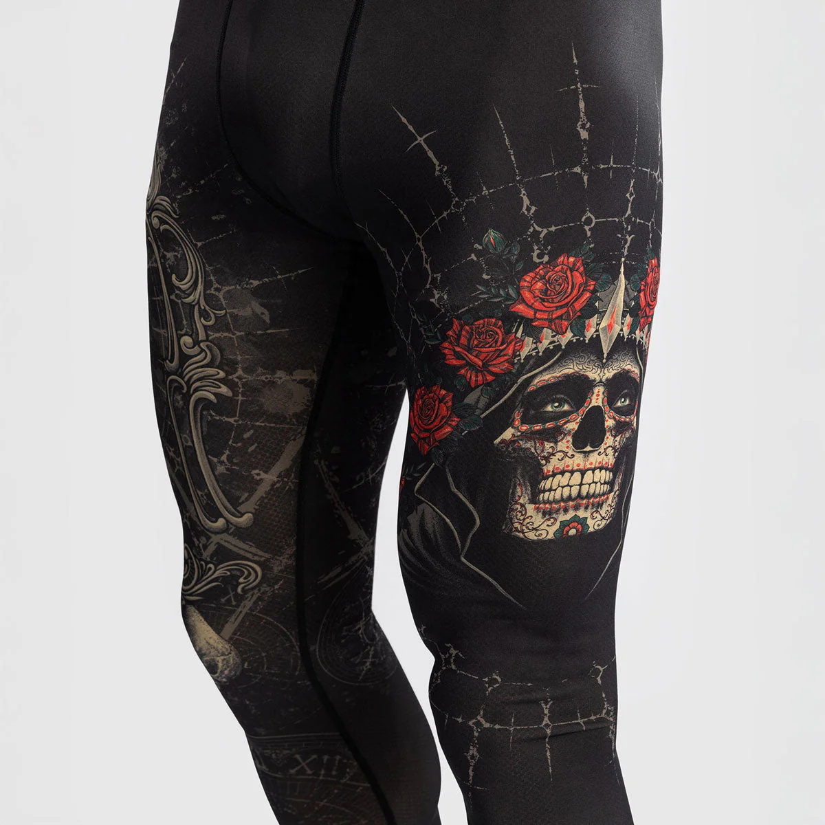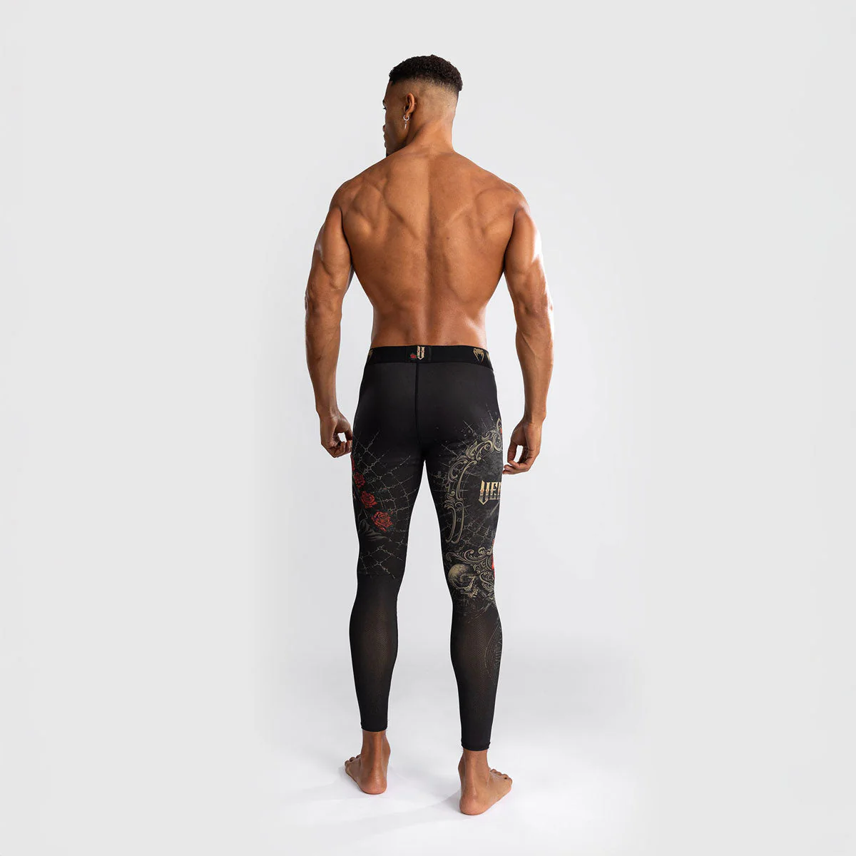 I Pantaloni a Compressione Venum Santa Muerte 5.0 Nero Oro sono pensati per atleti e fighter che cercano prestazioni elevate durante allenamenti di grappling, BJJ e MMA. Realizzati in tessuto leggero e flessibile, offrono un effetto “seconda pelle” che garantisce una vestibilità confortevole e favorisce il recupero muscolare durante e dopo l’attività fisica. Il design nero e oro, arricchito da dettagli gotici ispirati alla “Santa Muerte”, rende questi pantaloni a compressione unici e distintivi. L’elastico in vita con logo Venum ripetuto assicura una vestibilità stabile e sicura, mentre le cuciture rinforzate garantiscono durata anche durante gli allenamenti più intensi.