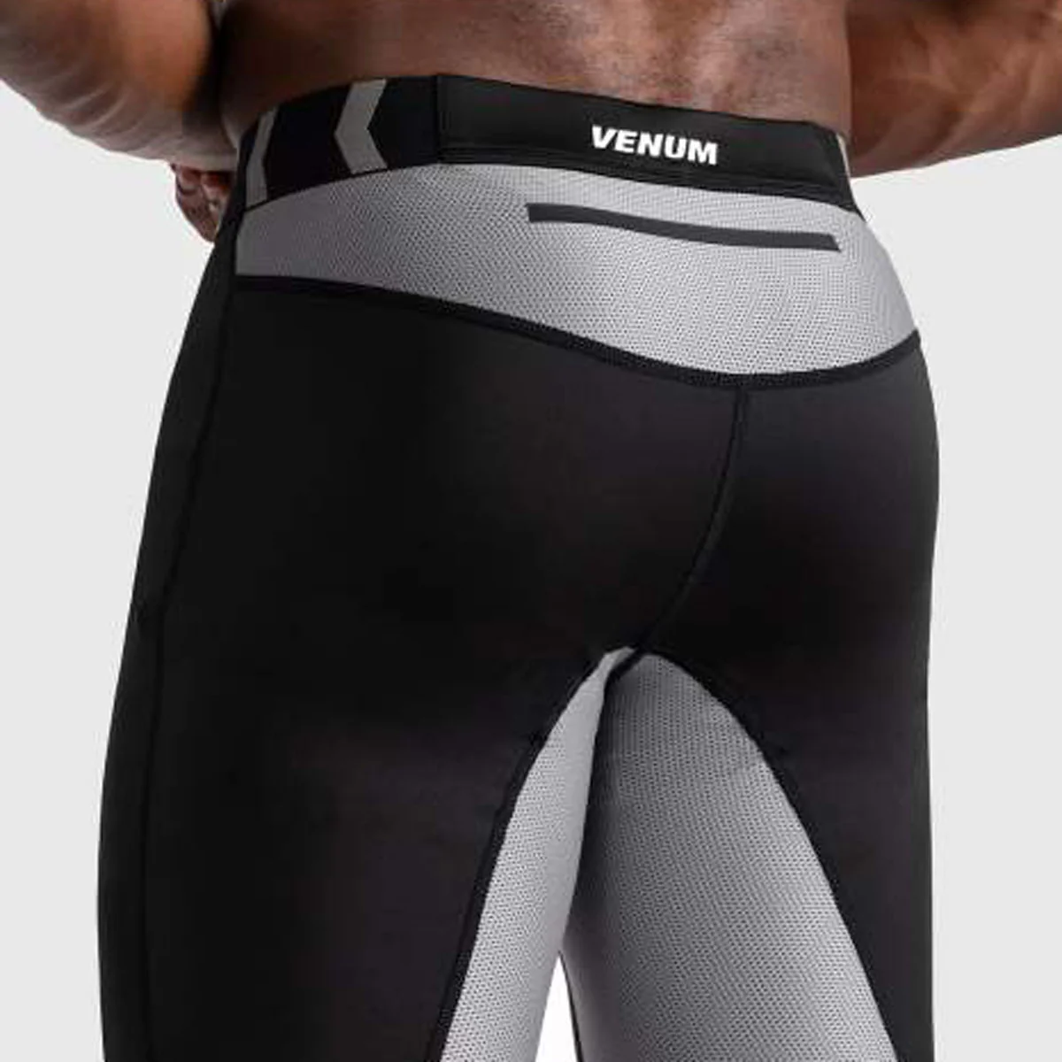 Affronta ogni sessione con i pantaloni a compressione Venum Tempest. Effetto seconda pelle per muoverti libero tra grappling, scramble e drill. La compressione sostiene i muscoli e aiuta il recupero, mentre le cuciture rinforzate resistono agli allenamenti intensi. Il tessuto in poliestere e elastan è morbido, traspirante ed elastico. La fascia in vita elasticizzata mantiene la vestibilità stabile durante le transizioni. Lo stile tono su tono della collezione Tempest è essenziale e grintoso: perfetto per MMA, BJJ e lavoro a terra. Grafica serigrafata e dettagli curati completano il look.