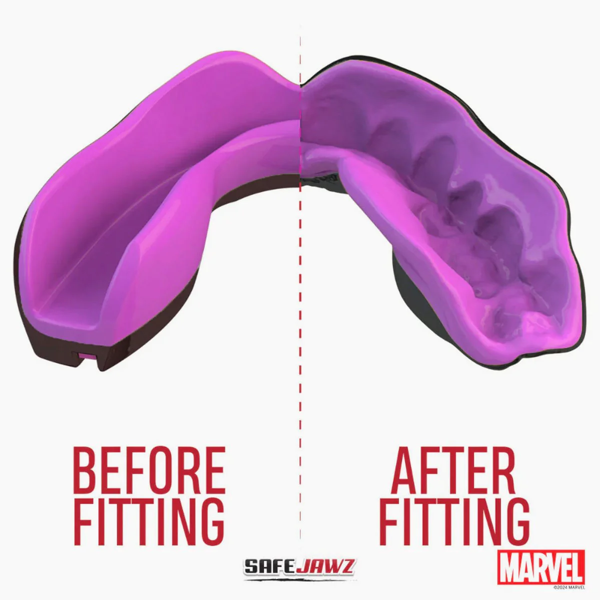 Scopri la collezione paradenti Safejawz Marvel, troverai un’ampia selezione ispirata a eroi iconici come Iron Man, Captain America, Black Panther, Hulk, Captain Marvel, Spider Man, Venom, Spider Gwen e l’inconfondibile logo Marvel. La tecnologia Fluid-Fit di questa protezione dentale garantisce che si adatti perfettamente ai tuoi denti, rimanendo saldamente in posizione durante l’attività sportiva. Grazie alla tecnologia Jaw-Secure, anche i denti inferiori sono protetti, nonostante si tratti di una protezione singola. Inoltre, la protezione dentale può essere rimodellata più volte se la vestibilità non è completamente soddisfacente. Opta per la massima protezione e stile con la collezione Marvel di Safejawz!