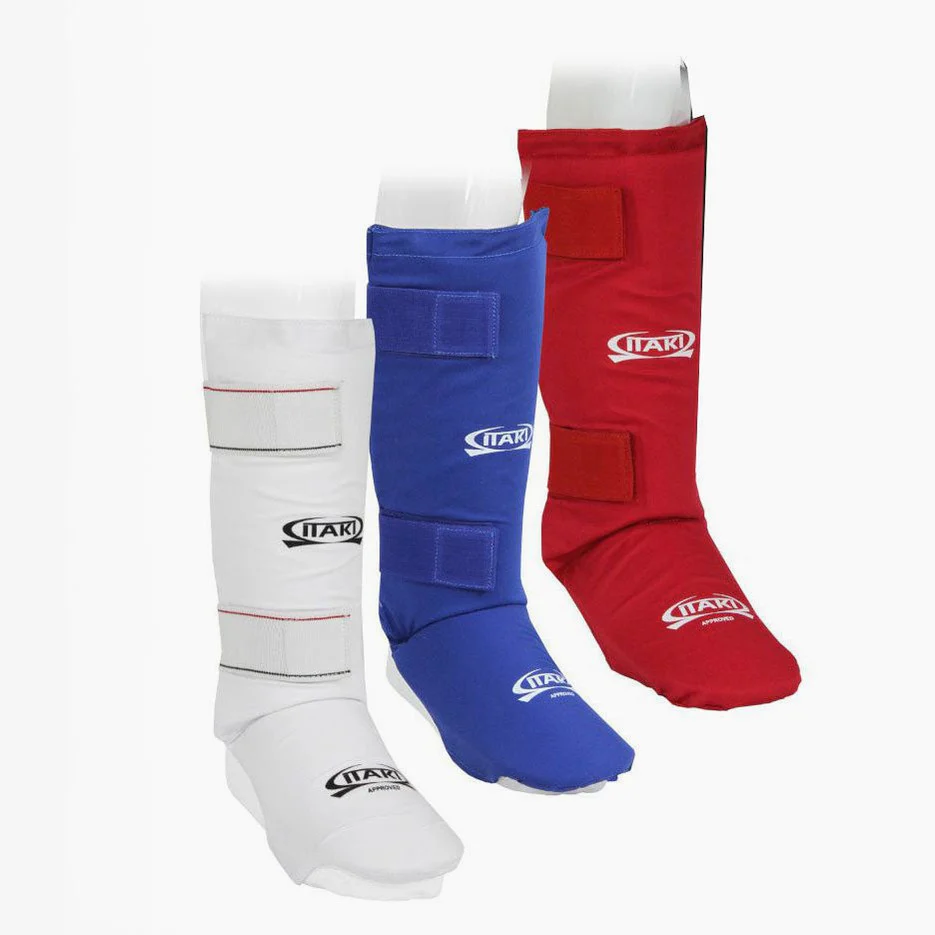 per kumité sono in cotone con gomma interna estraibile per facilitare il lavaggio. I paratibie sono protezioni molto importanti per chi pratica karate, e questo modello Itaki è di ottima qualità.