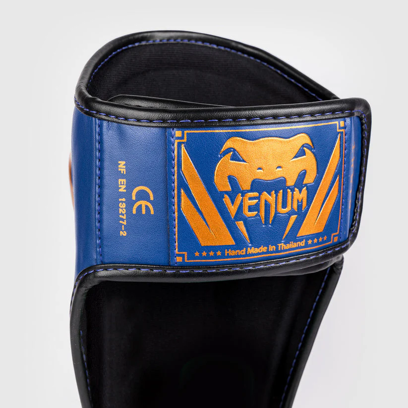 I Paratibie Venum Elite gold sono fatti a mano in Thailandia. Realizzati esternamente al 100% in pelle skintex, questi paratibie si distinguono perché rappresentano la giusta combinazione di comfort, sicurezza e resistenza, a un prezzo decisamente competitivo. Grazie all’imbottitura ad alta densità , rinforzata nelle zone più delicate (tibia e collo del piede) per assorbire anche i colpi più forti, vi potete sentire al sicuro. Al contempo, essendo i Paratibie Venum Elite nero/oro super-leggeri, non sacrificano la velocità e la mobilità . Precisa la vestibilità , assicurata dalle 2 chiusure grandi in velcro e dall’elastico posto sotto al piede.