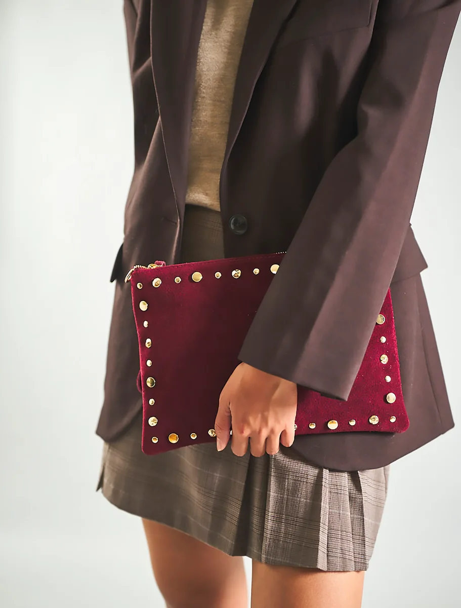 Pochette scamosciata con borchie donna
