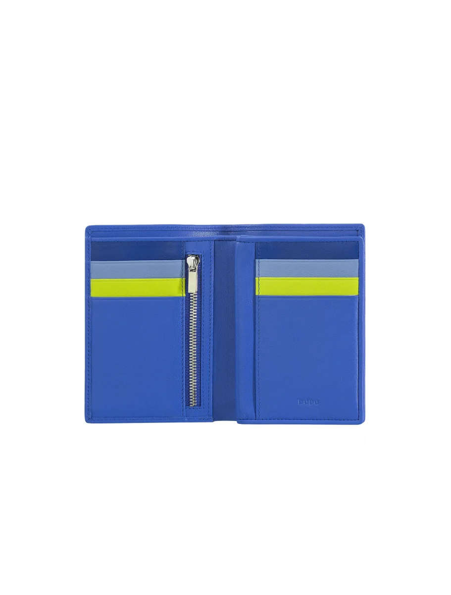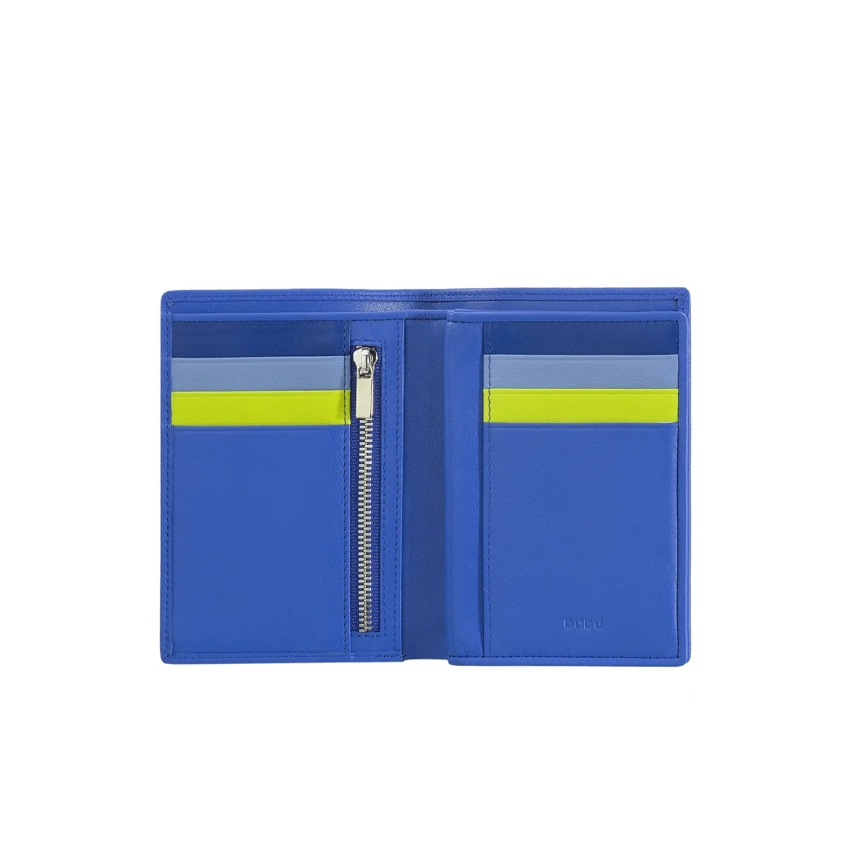 Portafoglio uomo a libro in pelle multicolore RFID porta documenti con lampo interna.