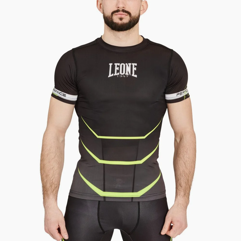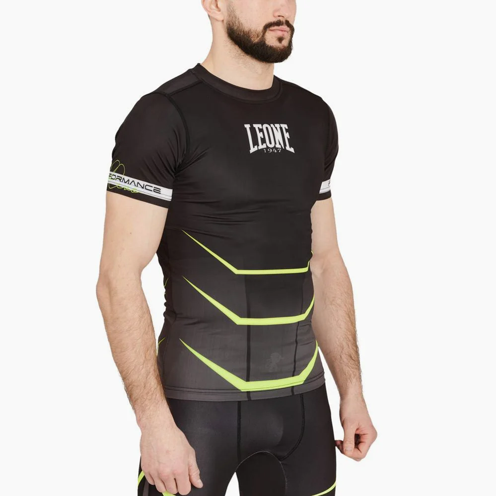 La Rashguard a compressione Leone Revo Fluo AB927F richiama la grafica dei celebri guantoni Revolution aggiungendo linee fluorescenti a contrasto che conferiscono un look accattivante. Confortevole e versatile, è realizzata in tessuto leggero e aderente: questa maglietta tecnica segue la linea del corpo e dona massima libertà di movimento. Perfetta per la pratica delle Arti Marziali Miste e adatta per ogni sport da combattimento.