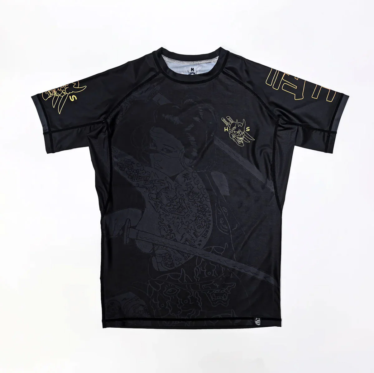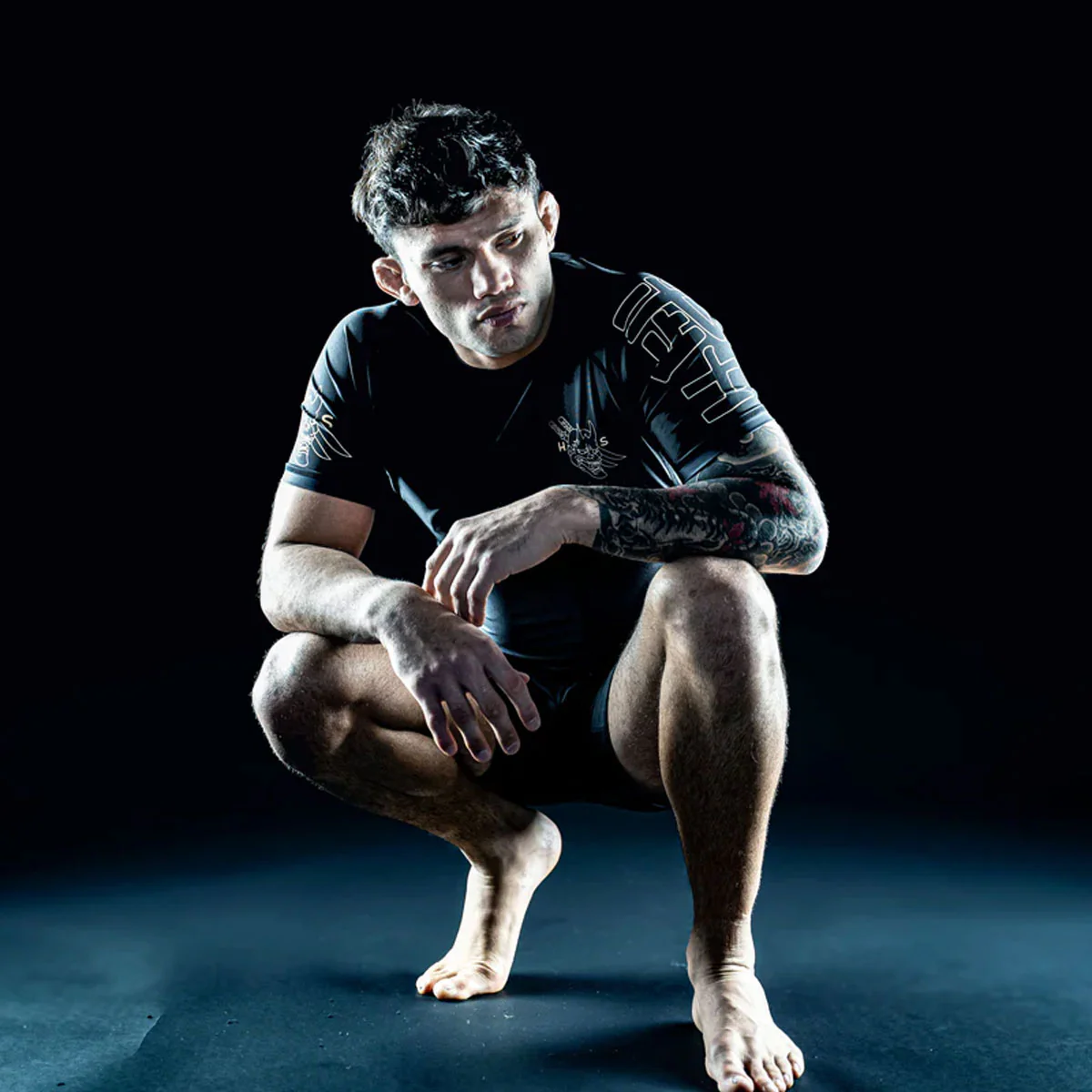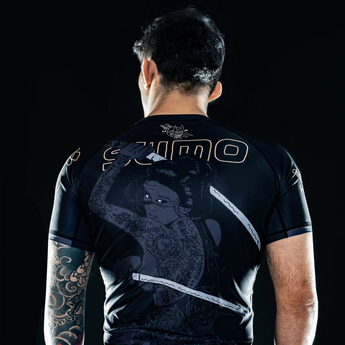 Il design presenta illustrazioni disegnate a mano in stile Irezumi, simbolo della passione per le arti marziali e dello stile Halfsumo. “No Mercy” esprime foza, controllo, determinazione implacabile e un’attitudine feroce per superare ogni limite con tecnica e carattere. Ideale per BJJ, MMA, wrestling e allenamento in palestra, si abbina al pantaloncino No Mercy per un look tecnico e coordinato.